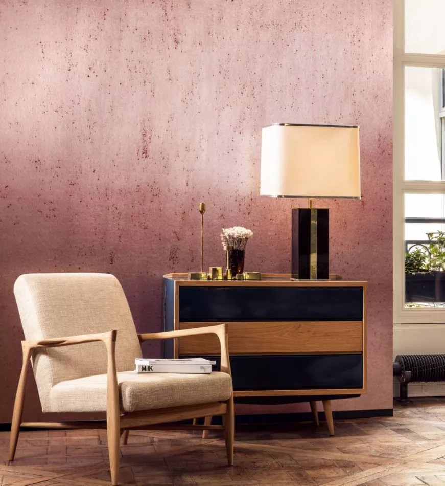 Diese Wandbekleidung wird aus echter Metall-Folie hergestellt. Während der Produktion, wird die Metall-Folie einem, speziell für diese Kollektion entwickelten, intensiven Prozess unterzogen. Sie wird dabei so gefärbt, dass die Wandbekleidung Schattierungen von einem authentischen Metall-Look bekommt.