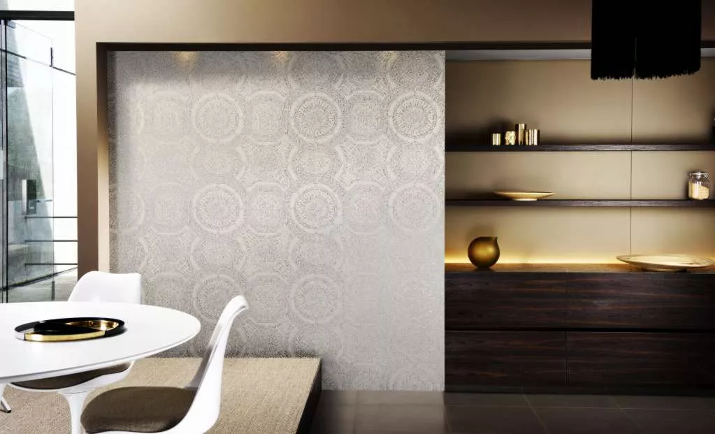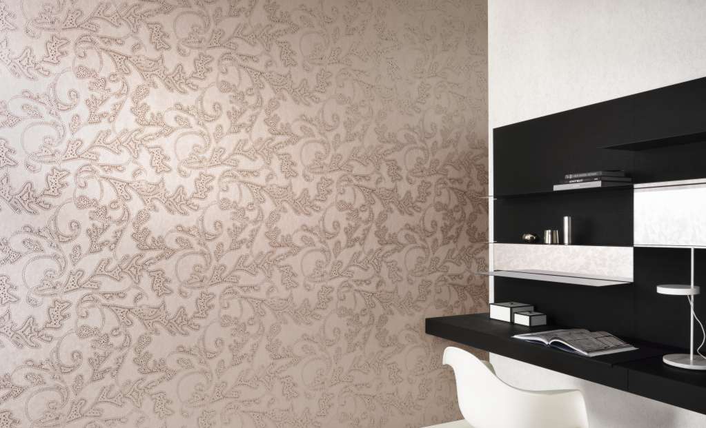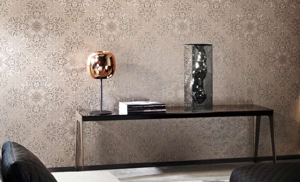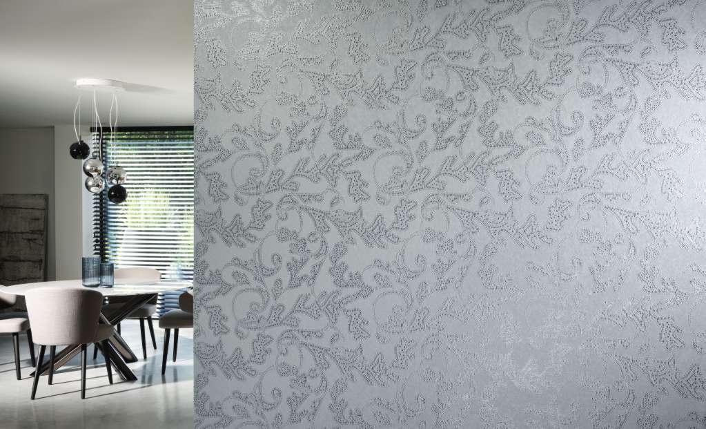 Arte hat für Monochrome eine neue Technik entwickelt, bei der das Relief mit Metallfarben kreiert wird. Die glänzende Relieffarbe wird auf einen matten oder metallfarbenen Untergrund aufgetragen. Dieser Prozess verleiht der Wandbekleidung Tiefe und bringt damit eine neue Dimension in Ihr Interieur. Um die Exklusivität dieser Technik zu betonen, dienten edle Materialien wie Holz, Leder und Edelmetall als Inspirationsquelle für die Muster. Die verschiedenen Ausführungen haben eine hochwertige Ausstrahlung mit Mustern, die einen auf eine Reise um die Welt entführen.