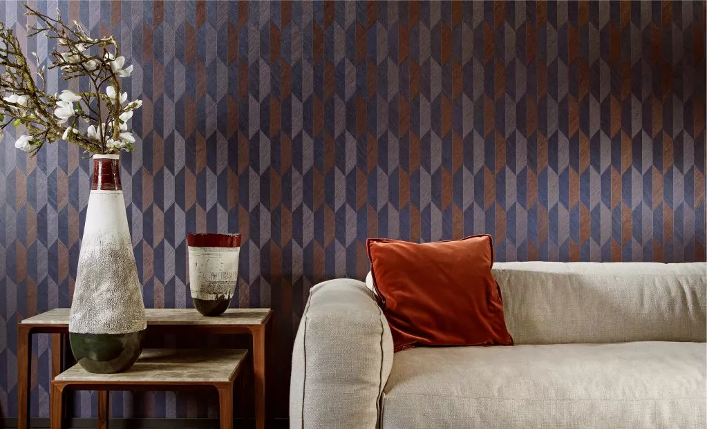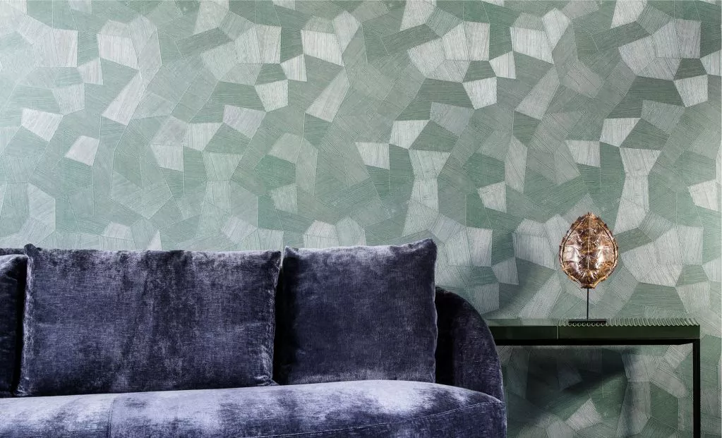 Ein überraschendes Muster mit unregelmäßigen Polygonen und einer Reliefillusion, das sich perfekt in jedes Interieur integrieren lässt.