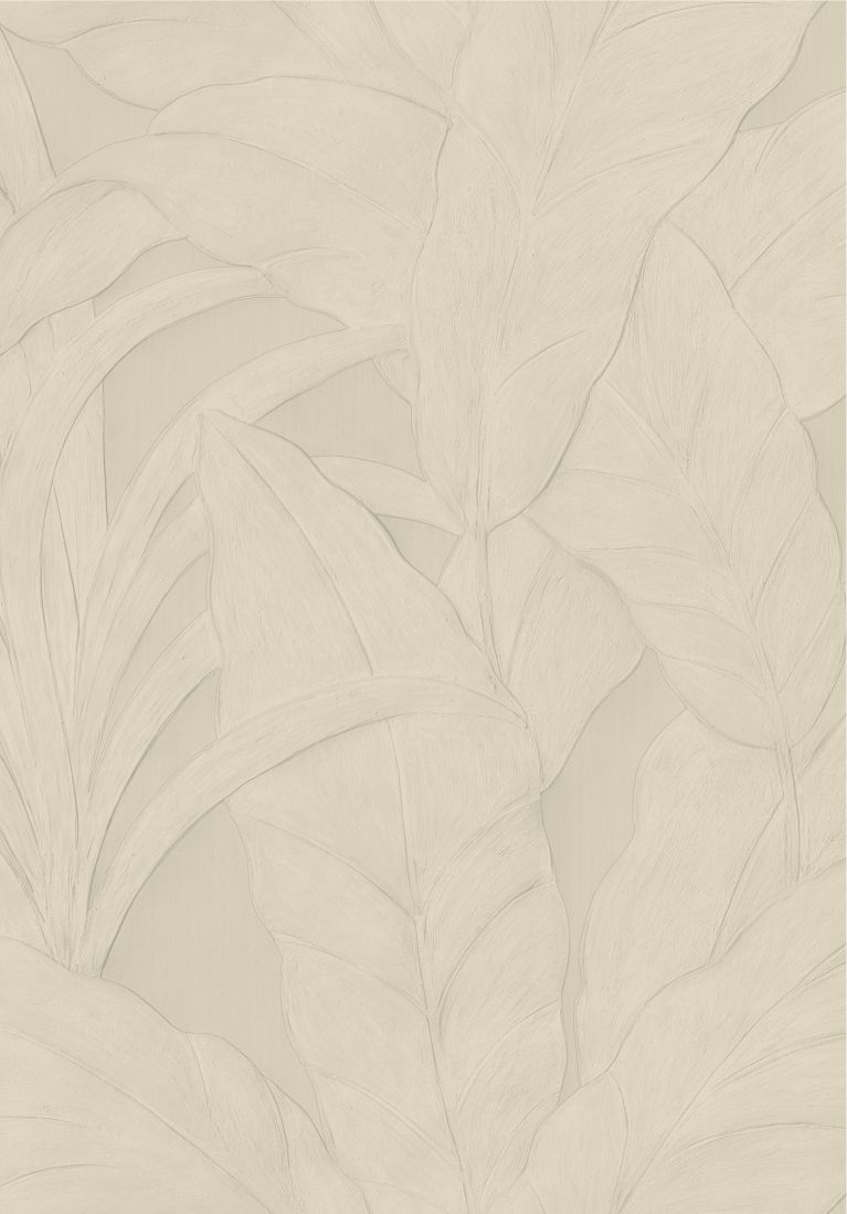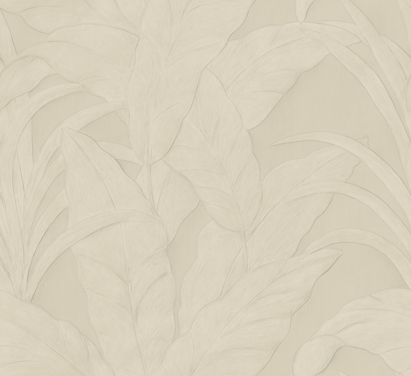 Die Blätter der Bananenpflanze atmen tropische Atmosphäre pur. Dieses Muster zeichnet sich einerseits durch seine Naturtreue und andererseits durch die luxuriöse Verarbeitung in Metallglanz aus.