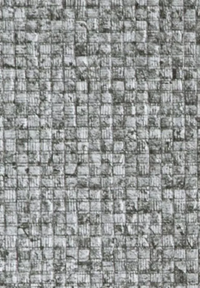 Und nach all der „Blätterwucht“ begegnen wir plötzlich einem überraschend feinen Motiv: Mosaic. In der Tat, ein kleines, ruhiges Muster aus zarten Rechtecken. Ohne scharfe Ränder oder Ecken, sondern eher abgerundet und wie aus dem Ärmel geschüttelt. Als ob mit Handstempeln gearbeitet worden wäre. Auch die Farben sind etwas verblasst, daher der „fahle“ Effekt.