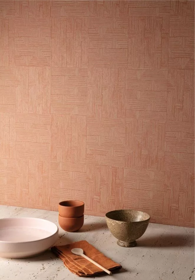 Vinylwandbekleidung auf Papier von der Botanik inspiriert.