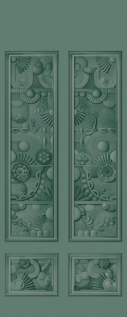 Greenhouse Gathering ist eine faszinierende Wandbekleidung die von dekorativen, klassischen Zierleisten inspiriert ist. Das Motiv vermittelt dem Betrachter das Gefühl, durch die Glasscheiben einer Orangerie (oder 'Green House' auf Englisch) zu spähen und darin eine atemberaubende Blütenpracht zu entdecken. Bei näherem Hinsehen erkennt man die feinen Details und wird der versteckten kleinen Lebewesen gewahr, die sich durch eine üppige grüne Landschaft bewegen. Greenhouse Gathering ist eine Wandbekleidung mit dem Charme des Art déco. Sie präsentiert sich in einer an Stuckarbeiten erinnernden monochromen Farbpalette. Die Wandbekleidung hat eine weiche Wildlederoptik, für ein außergewöhnlich taktiles Erlebnis.