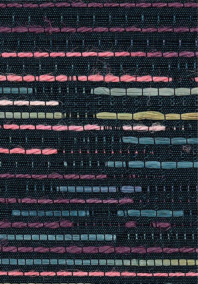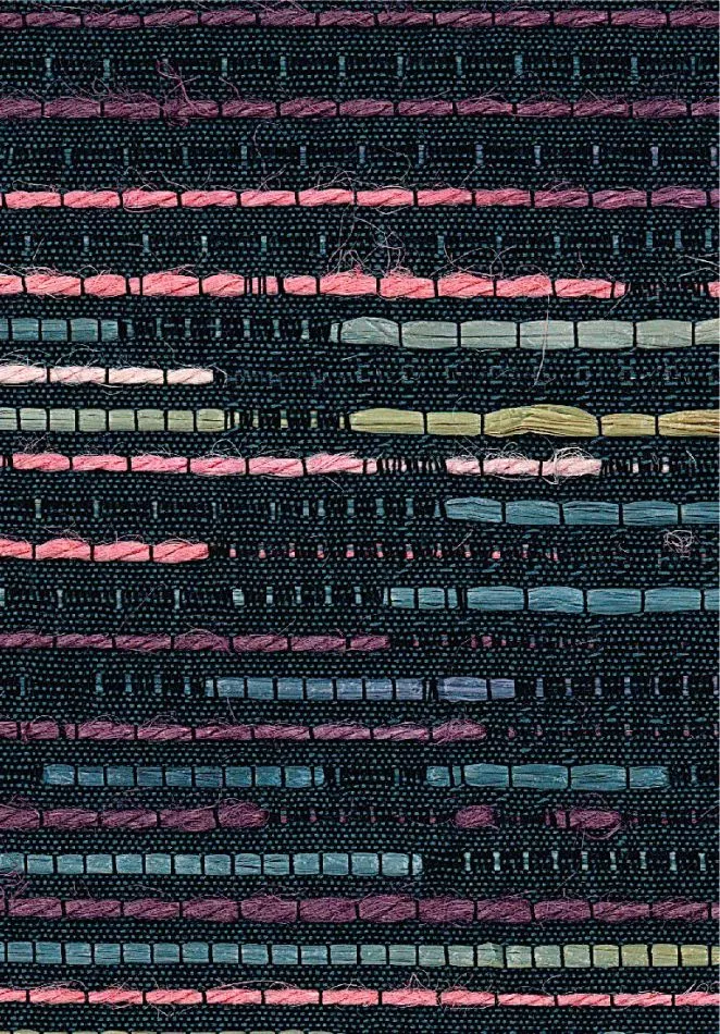 Verwöhnen Sie Ihre Augen mit der reichen und vielseitigen Farbenpracht eines spektakulären Sonnenunterganges! Diese Wandbekleidung aus Jute und Raphiabast – eine Hommage an den klassischen japanischen Bodenbelag aus gewebten Tatami-Matten – zeigt abstrakte Wolken, die langsam vorbeiziehen, weil der Tag in die Nacht übergeht.