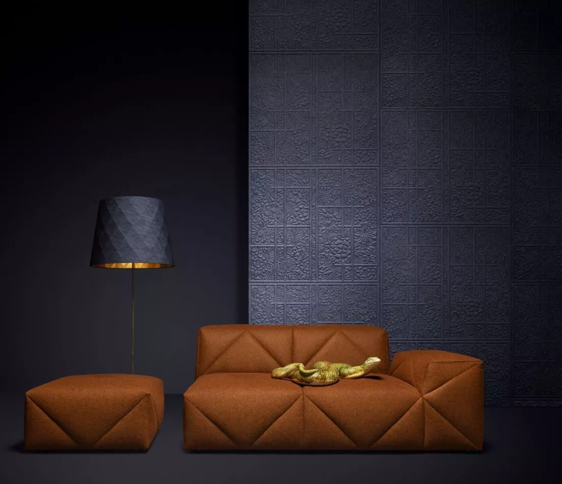 Symbolische Kirschblüten und gerade Linien ähneln die minimalistische Ausstrahlung der japanischen Shoji-Wände. Neben dem starken Kontrast der Rosatöne auf dem durchsichtigen Washi-Papier strahlt diese gleichmäßige 3D-Wandbekleidung, die aus Denim oder Filzwolle gefertigt wird, eine große Ruhe aus.