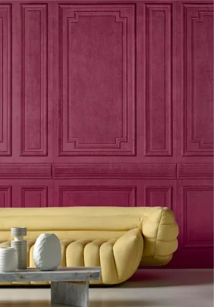 Schon seit Jahrhunderten werden Wände und Decken mit Zierleisten in allerlei Formen und Stilen geschmückt. Denken Sie mal an Sockelleisten, Kranzgesimse, Täfelungen oder Wandpaneele in stattlichen Herrenhäusern, imposanten Palästen oder anderen Monumentalbauten; sie bilden die Inspirationsquelle der Kollektion „Objet“. Diese dekorativen Paneele sind einfach zu verarbeiten und bringen neben Farbe und Textur auch Relief in den Raum. Für ein besonders kuscheliges Ergebnis sind sie in einer weichen Wildleder-Optik ausgeführt. Darüber hinaus wirkt sich diese 3D-Wandbekleidung auch auf die Akustik positiv aus.