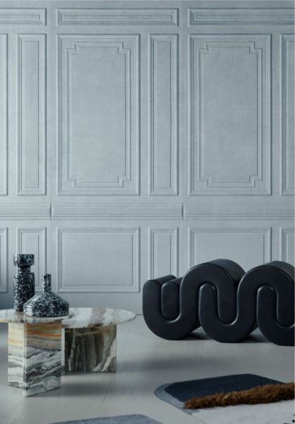 Diese Paneele sind von den Zierleisten stattlicher Herrenhäuser und imposanter Paläste inspiriert. Sie sind einfach zu verarbeiten und bringen neben Farbe und Textur auch Relief in den Raum. Für ein besonders kuscheliges Ergebnis sind sie in einer weichen Wildleder-Optik ausgeführt. Darüber hinaus wirkt sich diese 3D-Wandbekleidung auch auf die Akustik positiv aus.
