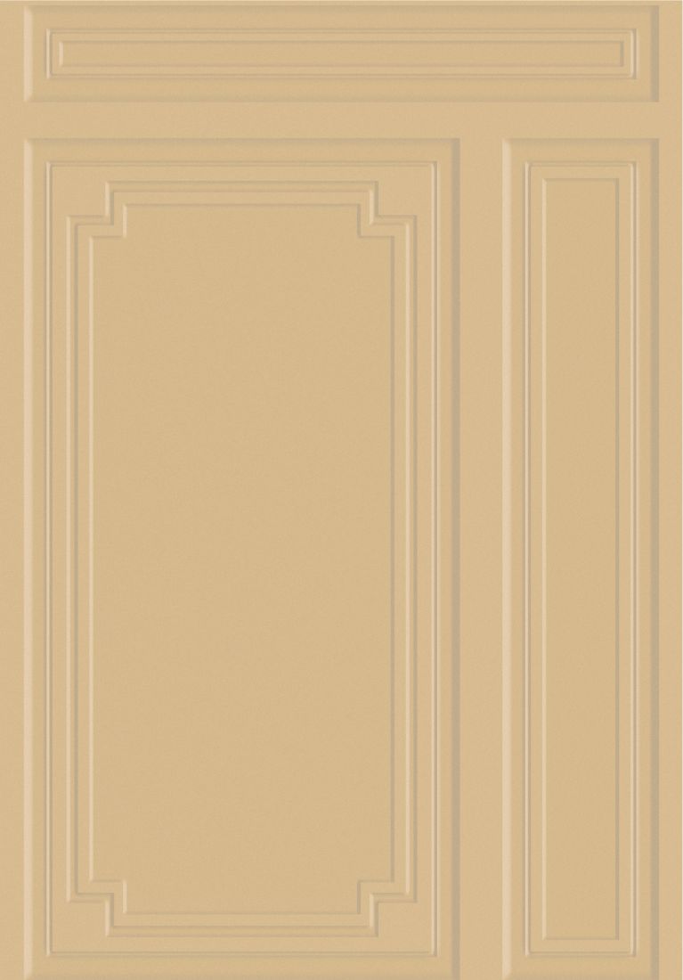 Umschreibung: Von Zierleisten inspirierte Paneele in weicher Wildleder-Optik