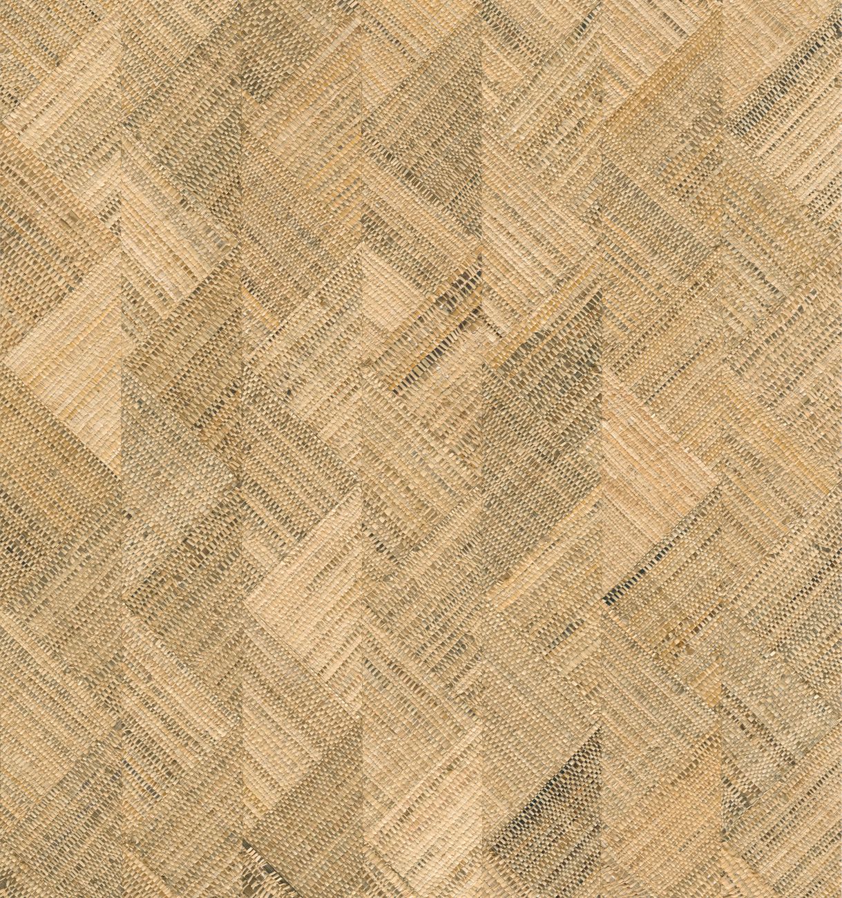Umschreibung: Breite Streifen aus handgewebtem Raffia, die in einem dynamischen Muster eingelegt sind.