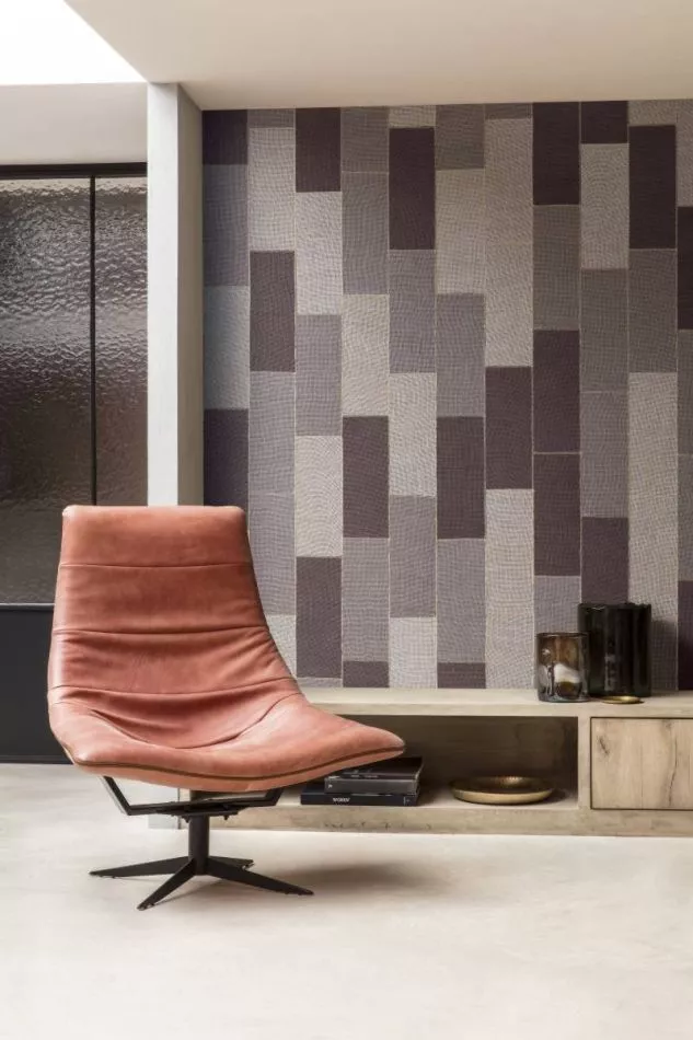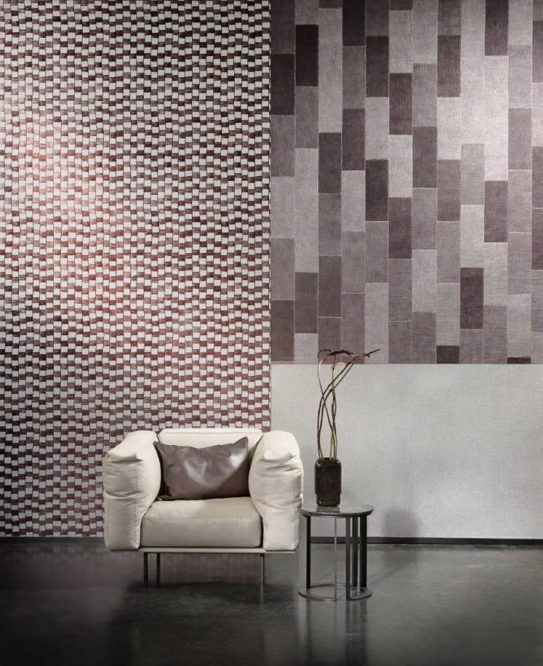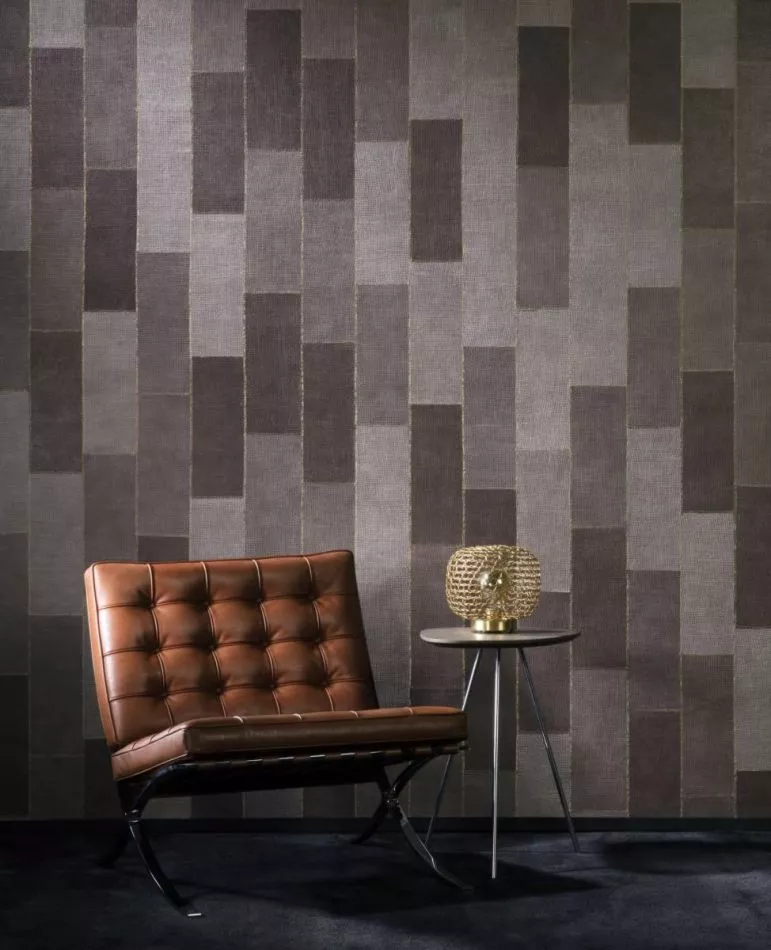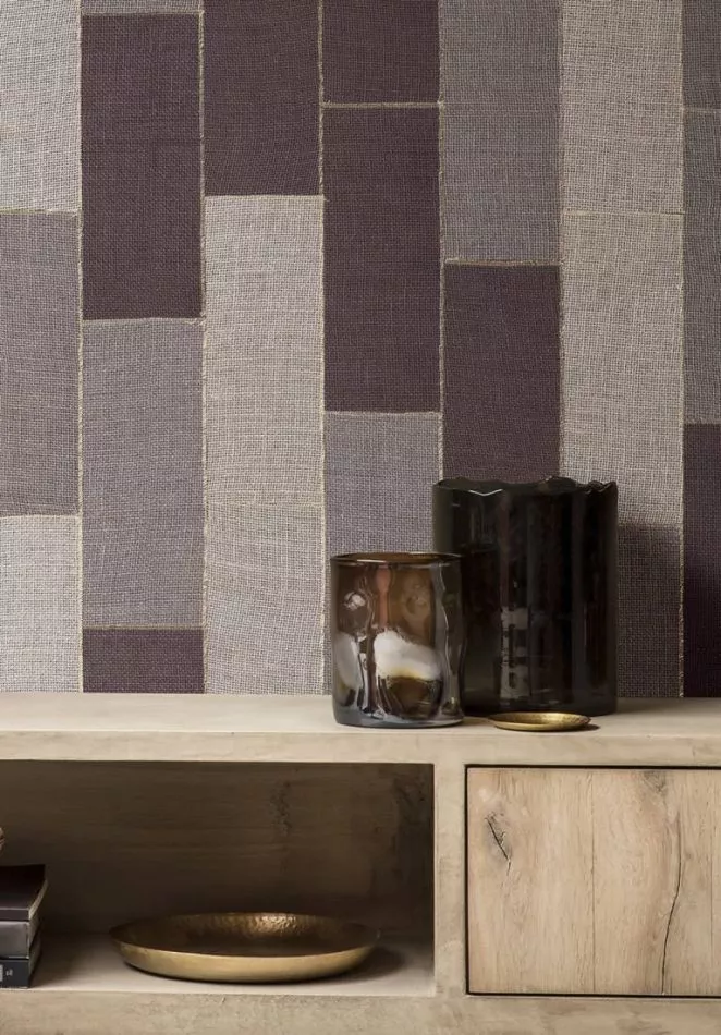 Das Muster Align ist ein Patchwork von echter Jute, das dank einer speziellen Verarbeitung eine ausgezeichnete Farbechtheit bekommt.