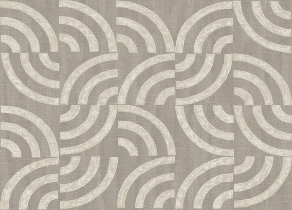 Arc ist ganz gewiss ein konventionelles Muster. Es scheint, als ob dutzende Puzzlestückchen auf willkürliche Art und Weise angeordnet wurden. Die verschiedenen Kurven stehen asynchron zueinander, wodurch ein besonderer Look entsteht. Aus der Distanz gesehen ähnelt das Dessin einem trendy Vintage-Druck mit welligen Mustern.