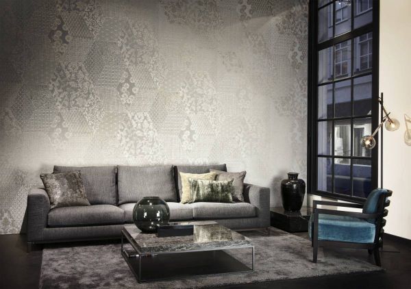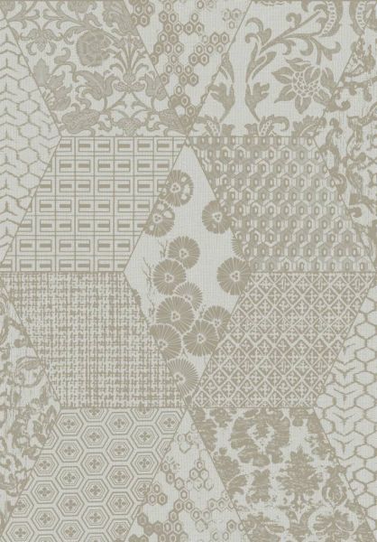 Patch kombiniert verschiedene Drucke und bildet daraus eine eklektische Collage. Das Dessin, bestimmt für die wahren Wagehälse oder ewigen Zweifler, ist eine Anspielung auf die 60er Jahre, als Frauen sich in grelle, große Printkleider mit kontrastreichen Farben kleideten. Dieses Patchwork ist u.a. mit einem Untergrund aus Gold- oder Silberfolie erhältlich.