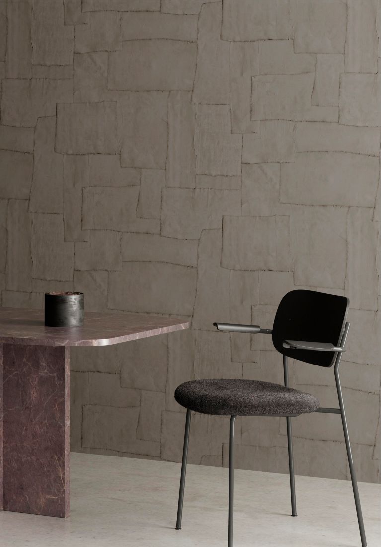 Sculptura bezieht seine Inspirationen von klassischen Stuck-Dekors. Gipsstreifen wurden von Hand zu einem Muster angeordnet und schließlich in eine eindrucksvolle Vinyl-Kollektion verwandelt. Die typische Gipsstruktur mit Netzbasis, Rissen und Unebenheiten ist deutlich sichtbar. Dieses faszinierende Wanddesign mit seinen überraschenden geometrischen Mustern verleiht der Wand auf subtile Weise einen Hauch von Farbe sowie eine strukturierte Reliefoberfläche. Das Schattenspiel von Hell und Dunkel erweckt glatte Wände zum Leben. Kurz gesagt, Sculptura verleiht Ihrem Interieur einen subtilen dekorativen Touch, ohne sich dabei in den Vordergrund zu drängen.