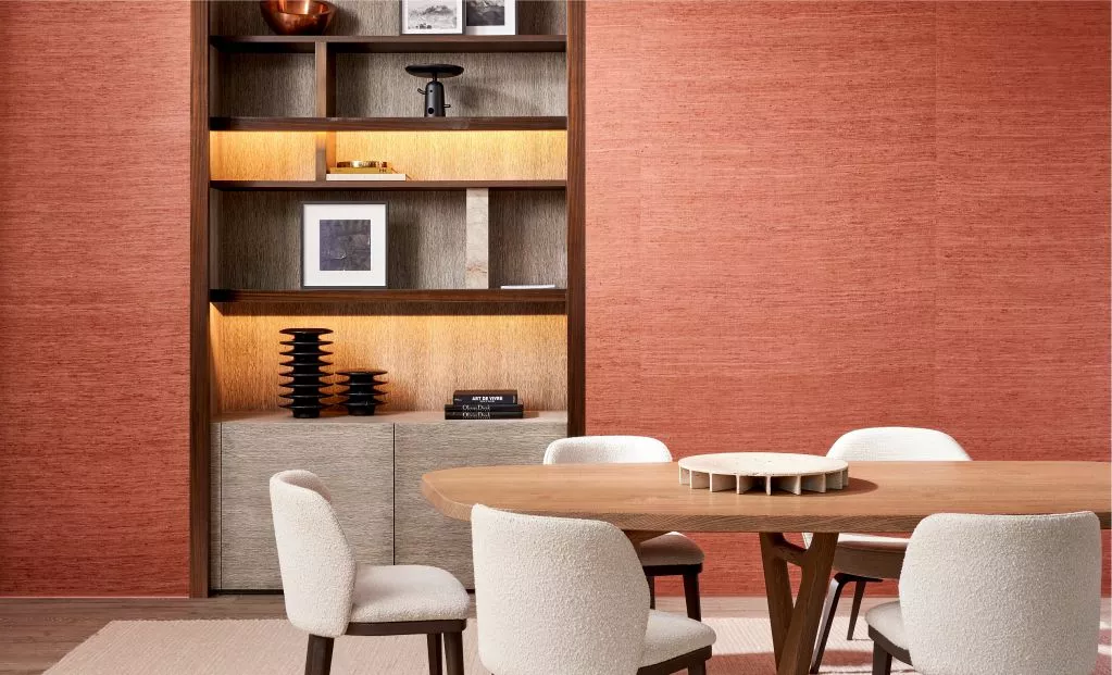 Lassen Sie Ihre Wände sprechen mit einem edlen Glanz, den nur echte Seide bieten kann, während die natürliche, organische Eigenheit des Materials dem Raum zeitlosen Charme verleiht.