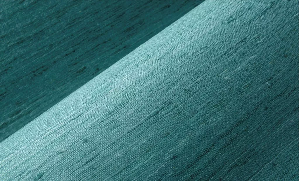 Dieses Design ist aus handgewebter Seide gemacht, die vor allem von den in Indien heimischen wilden Seidenspinnern stammt. Die arbeitsaufwendige Handspinntechnik ergibt Unregelmäßigkeiten und scheinbare Fehler, die den authentischen Charakter dieses prachtvollen Naturprodukts hervorheben.
