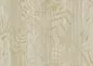 Ein paradiesisches Dschungelmotiv mit stilisierten Pflanzen und Baumstämmen vor einem sanften Hintergrund aus Holzmaserungen. Die Hochglanzfolie reflektiert das Licht und lässt es so aussehen, als würden Sonnenstrahlen durch die Vegetation schimmern.