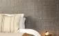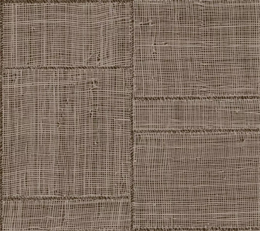 Inspiriert von handgewebtem offenem Patchwork aus Raffiabast, bei dem die Flächen von verschiedenen Größen zusammengenäht sind. Die natürliche Bewegung des lockeren Gewebes charakterisiert das Muster. Die ungleichmäßigen Fäden variieren in ihrer Dicke, wodurch Schatten und Tiefe hervortreten.