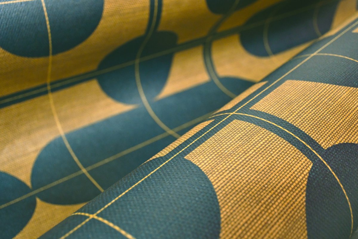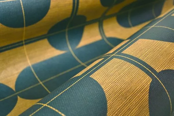Eine Zeichnung, die auf der Uni-Wandbekleidung mit dem natürlichen Sisallook ausgeführt wurde. Inspiriert wurde sie von dem Möbel- und Dekorationstrend mit eleganten, geschwungenen Linien und ausgesprochen runden Formen, der stark im Kommen ist. Die Kreise kontrastieren schön mit dem subtilen, geometrischen Gittermuster.