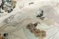 Umschreibung: Szenerie eines japanischen Teichs auf einem Textilgewebe mit Seidenoptik