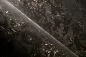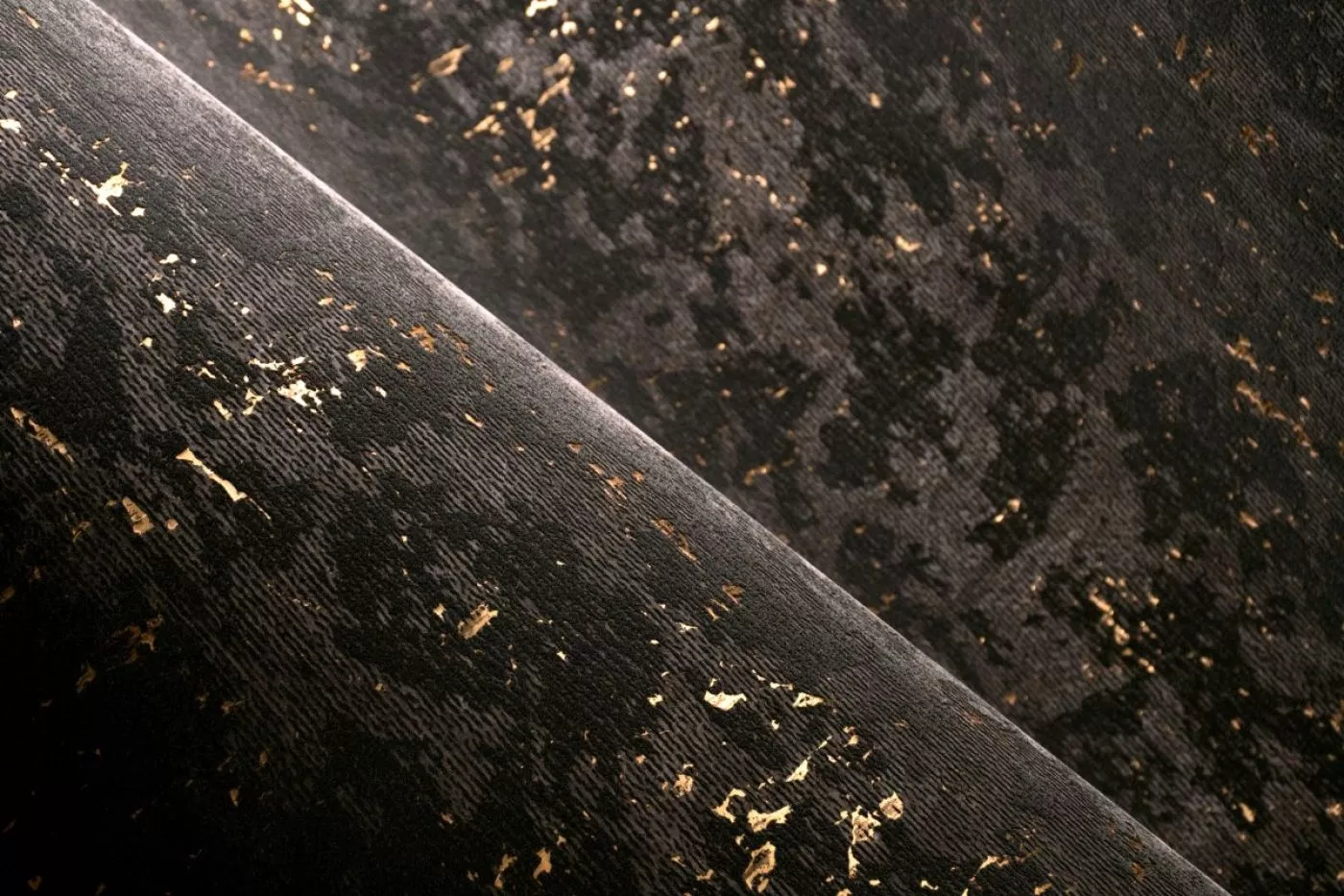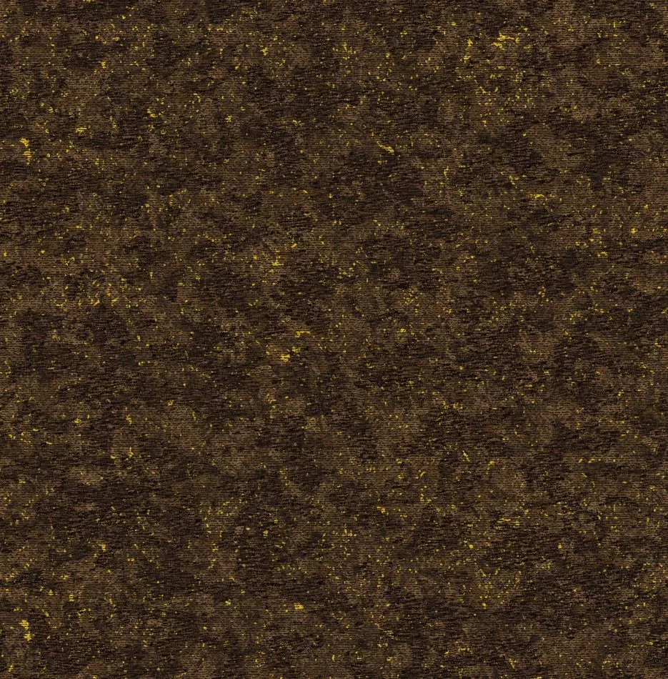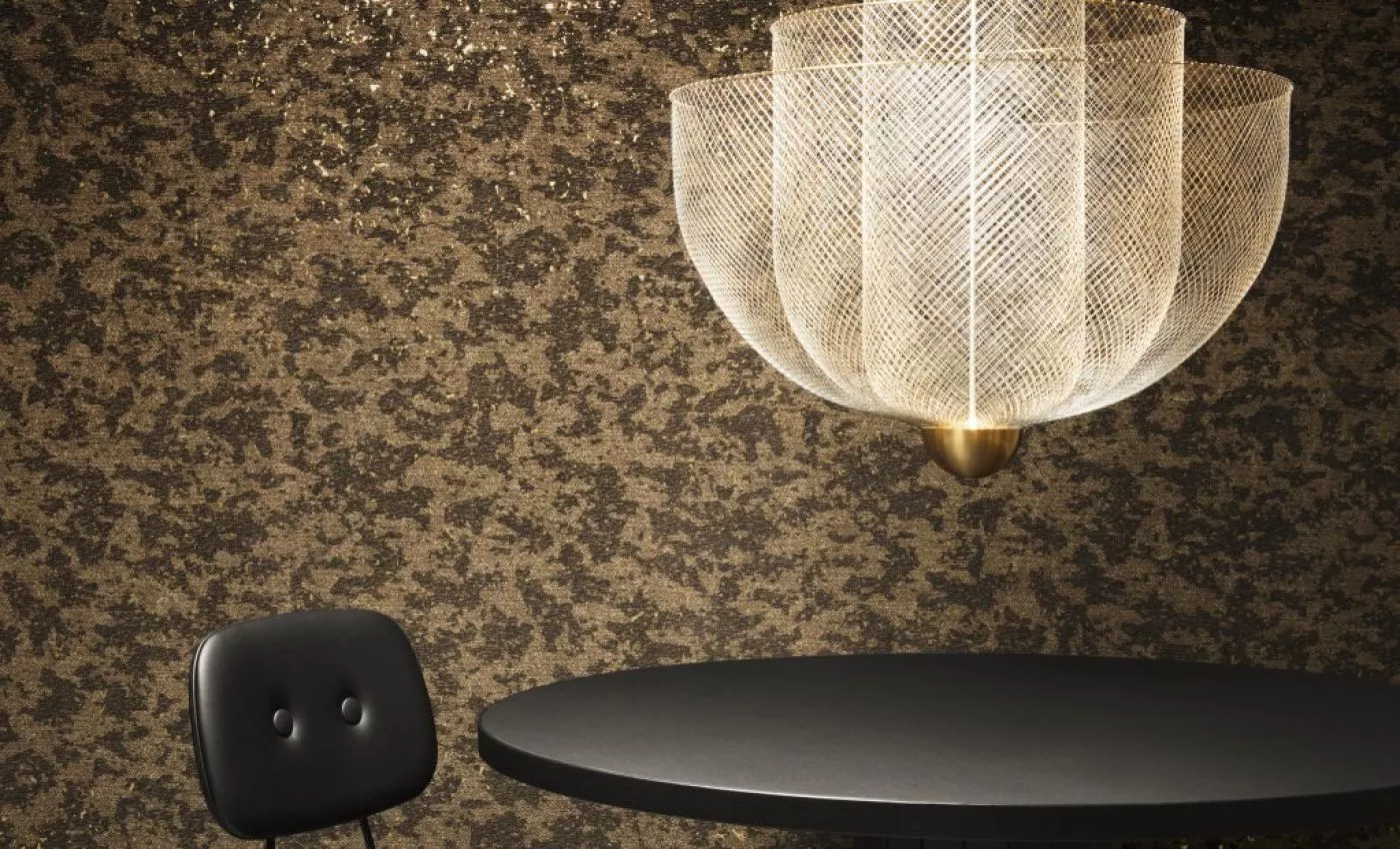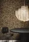 Die mit Kork bedruckte und beflockte Wandbekleidung auf Folienbasis ist inspiriert von dem Fell des Bearded Leopard: Blassgelb bis satt goldgelb und geschmückt von einer dunklen Roseknospen-Konstellation.