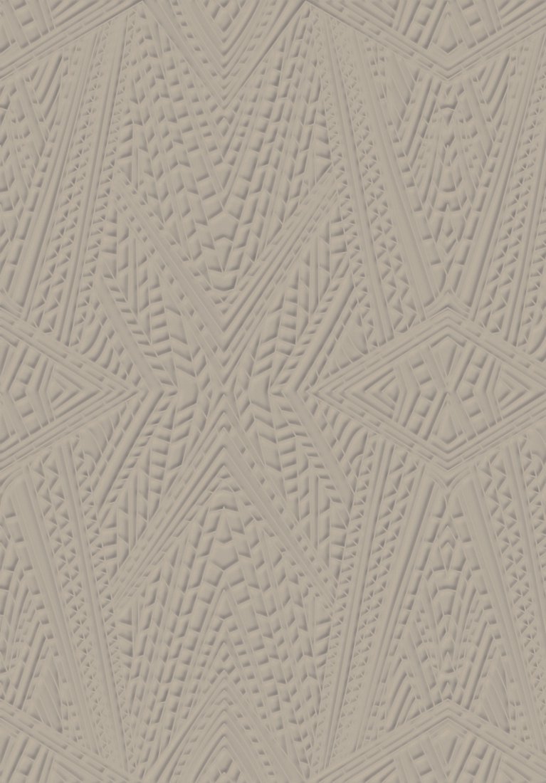 Eine 3D-Wandbekleidung, in weicher Wildleder-Optik die sich die einzigartige Struktur der fast antiken Haut und der typischen graubraunen Falten zum Beispiel nahm, und einer Rüstung glichen.