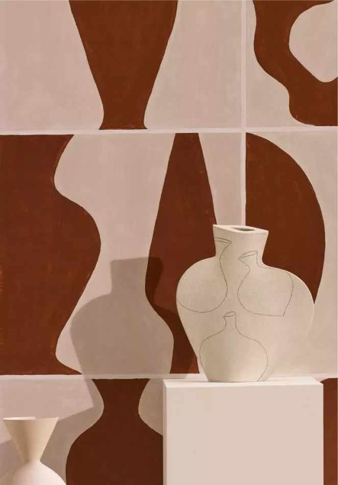 Be ready to experience the signature colour palette of the artist and its luminous natural hues: terracotta, powdery cocoa,