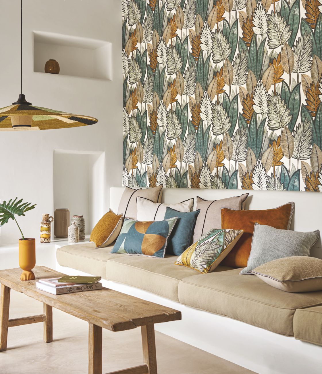 Die vernetzten Blätter des Sabal inspirieren dieses sehr farbenfrohe Design, das durch eine Strohmaserung hervorgehoben wird. Der Tiefdruck ermöglicht eine schöne Präzision des Musters und eine große Feinheit in der Kombination der Farben. Die intensiven Farben kommen im natürlichen Aspekt der Maserung zum Vorschein. Sabal ist auf den Stoff „Balata“ abgestimmt. Sabal ist eine Palme, deren handförmige Blätter eine kurze Hauptader haben.