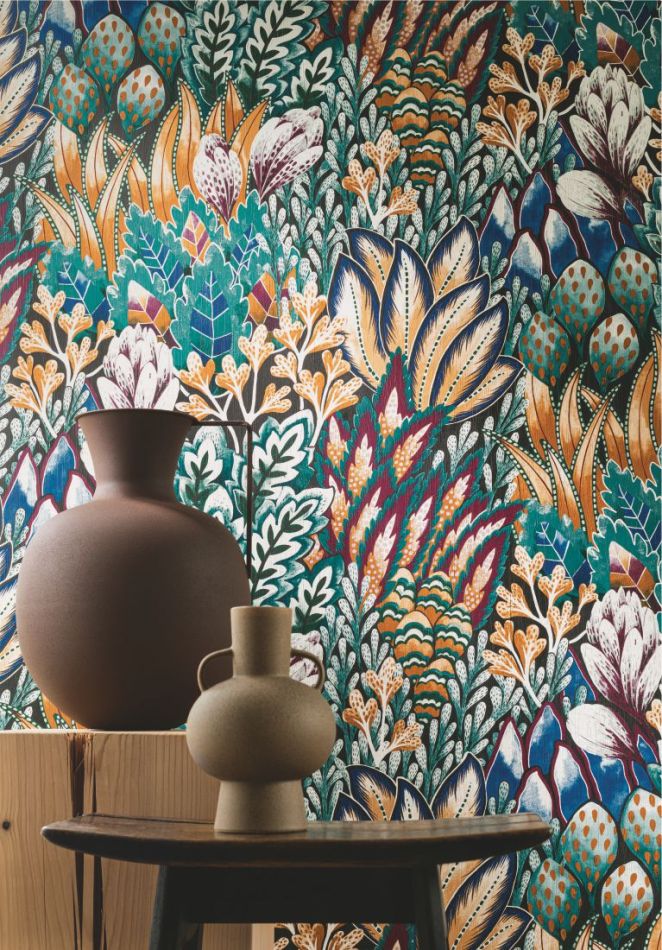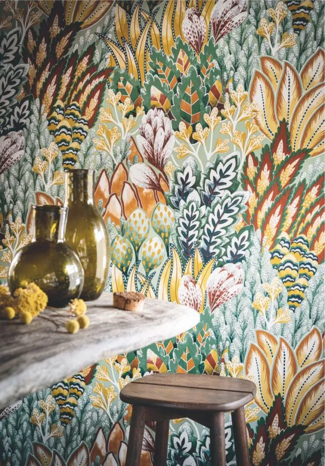 Karabane ist eine grüne Insel ohne Straßen in der Nähe des Flusses Casamance im Süden Senegals. Es ist auch eine authentische Kollektion, die die Schönheit von Orten aufs Papier bringt. Die Kollektion ist von einem traditionellen Stoff mit geometrischen Motiven inspiriert, die exotische Blätter darstellen. Es interpretiert üppige Vegetation aus Mangobäumen, Flammenbäumen und Bougainvilleas neu. Die Designs und Texturen sind in einer Reihe natürlicher Farbtöne erhältlich, von den weichsten bis zu den lebhaftesten.