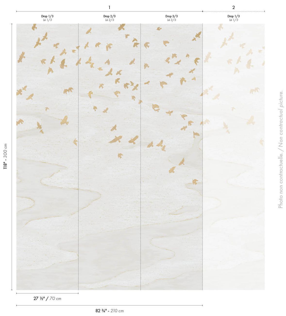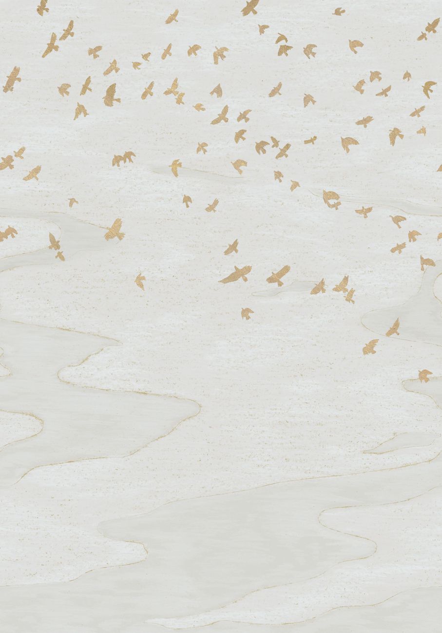 Sie legen tausende von Meilen zurück und folgen Wegen, die für uns unsichtbar sind. Auf einem goldenen Untergrund ziehen sie entlang von Pfaden, die sich in die Tiefen eines mitternachtsblauen Himmels, das Gold eines feurigen Sonnenuntergangs oder die Sanftheit eines klaren Himmels eingraben. Zugvögel durchqueren diese Himmelslandschaften auf der Suche nach einem neuen Ziel. Für einen Moment nehmen sie uns mit auf ihre Reise.