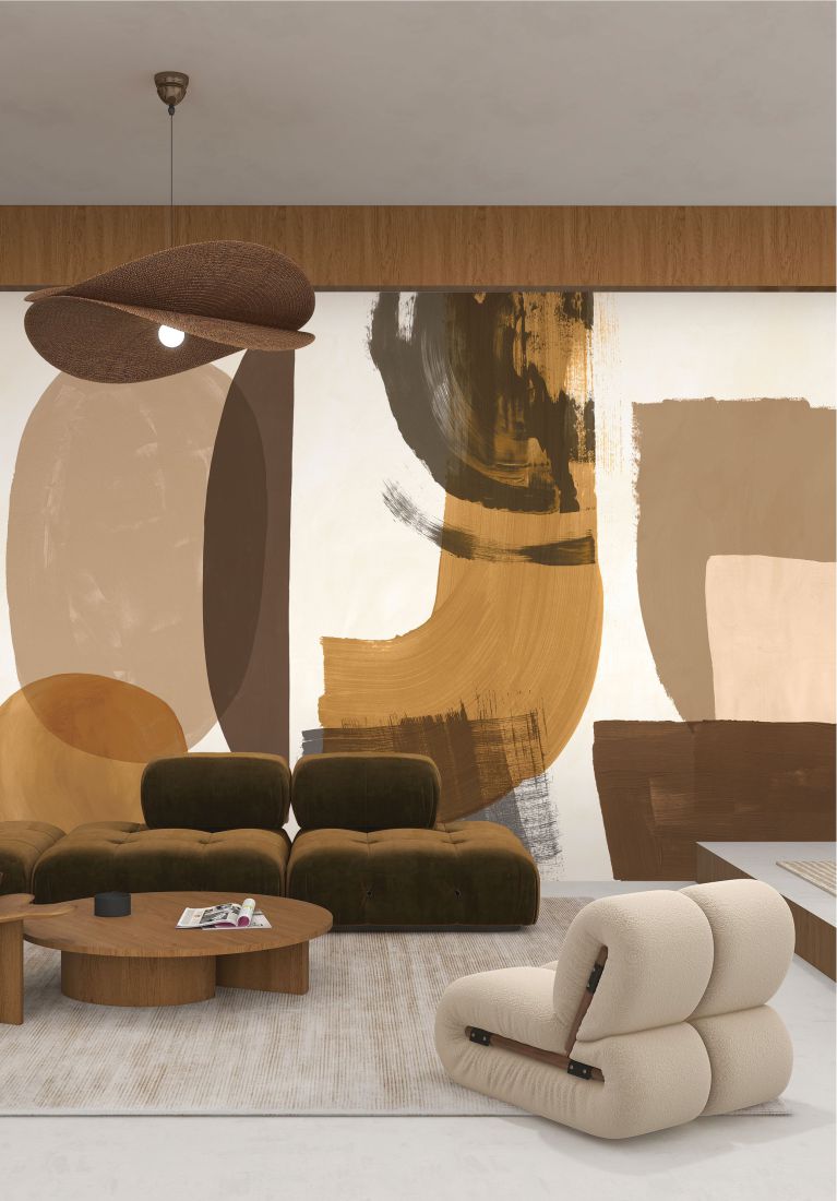 Papunya ist eine Stadt mitten in der Wüste und die Geburtsstätte einer neuen künstlerischen Bewegung in den 1970er Jahren, die auf der Kunst der Aborigines basiert. Ihre Muster bestehen aus abstrakten Designs und Landschaften, wie sie aus der Vogelperspektive erscheinen. Die Designer von Casamance ließen sich von den Farben und Formen dieser Kunst für dieses großflächige Projekt inspirieren. Mit Acrylfarben wurden Schatten, Schichtungen und Texturen auf einer textilen Basis geschaffen, die an die Malereien auf Felswänden in Australien erinnern.