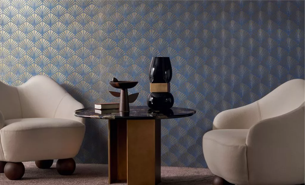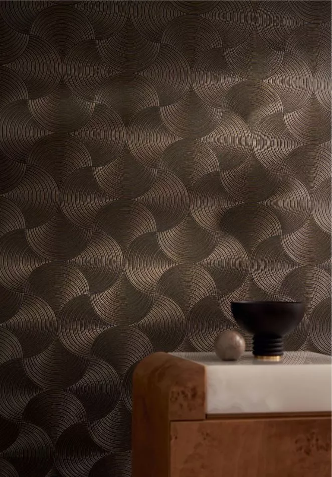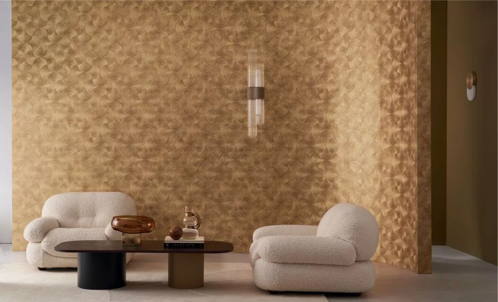 Die Kollektion vereint innovative Techniken mit der luxuriösen Textur einer extrabreiten Wandverkleidung und vermittelt das Strahlen der Sterne sowie die Größe jeder Kreation.