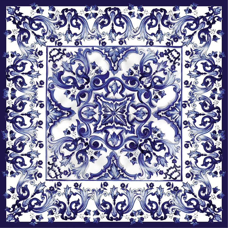 Dieses Wandbild zeichnet sich durch ein beeindruckendes blau-weißes Muster aus, das von traditionellen sizilianischen Kachelmotiven inspiriert ist. Die Kombination aus tiefem Blau und reinem Weiß erzeugt eine erfrischende und zugleich zeitlose Ästhetik.