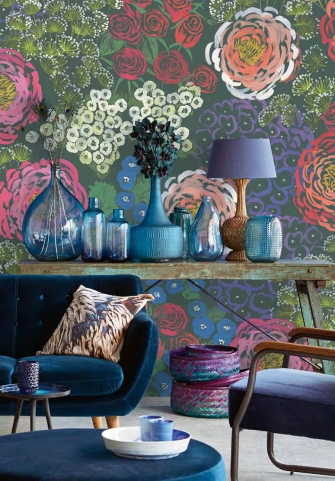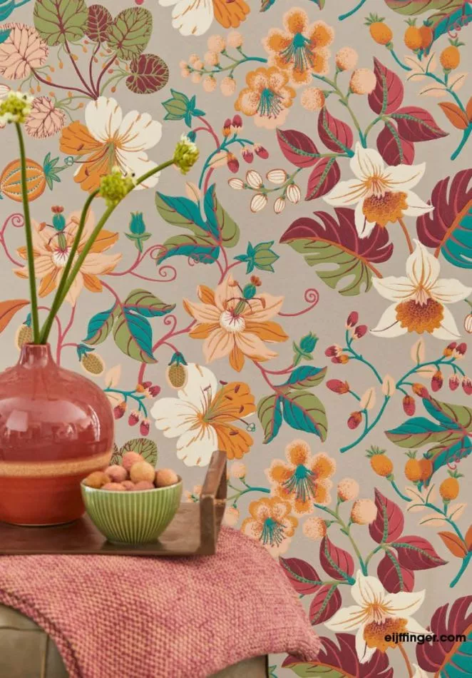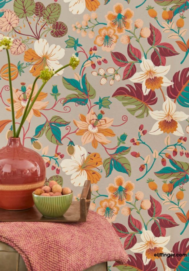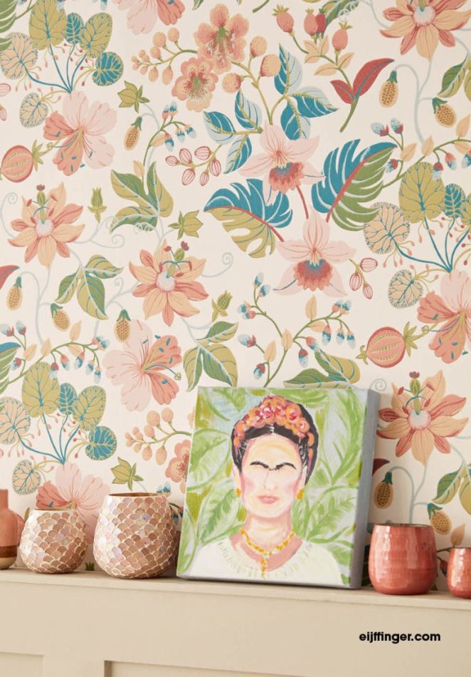 Erleben Sie mit Carmen das mexikanische Ambiente. Eine Sammlung mit einer Anspielung auf die faszinierende Arbeit von Frida Kahlo und die Folklore Südamerikas. Lebendig bemalte Blumen blühen vor frischer Sahne, dunklem Grün, Beige, Pfauenblau oder dramatischem Schwarz. Wallpowers mit einem Muster aus bunt verwitterten Fliesen. Ergänzt durch einen Hintergrund aus stilisierter Lilie, abstrakten Prägeblumen und zarten Zweigen mit lebendigem Stickereieffekt. Verschönern Sie Ihre Wände mit anmutigen, oberflächenbedruckten Ranken und einem applizierten Blattmotiv, das reich an Details und Oberflächenstrukturen ist.