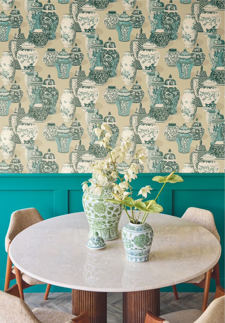 Die Transparenz des kostbaren Ming-Porzellans, wie sie von Simon Luttichuys dargestellt wurde, wurde in ein zartes Design verwandelt, das Luttichuys’ feine Zurückhaltung widerspiegelt.