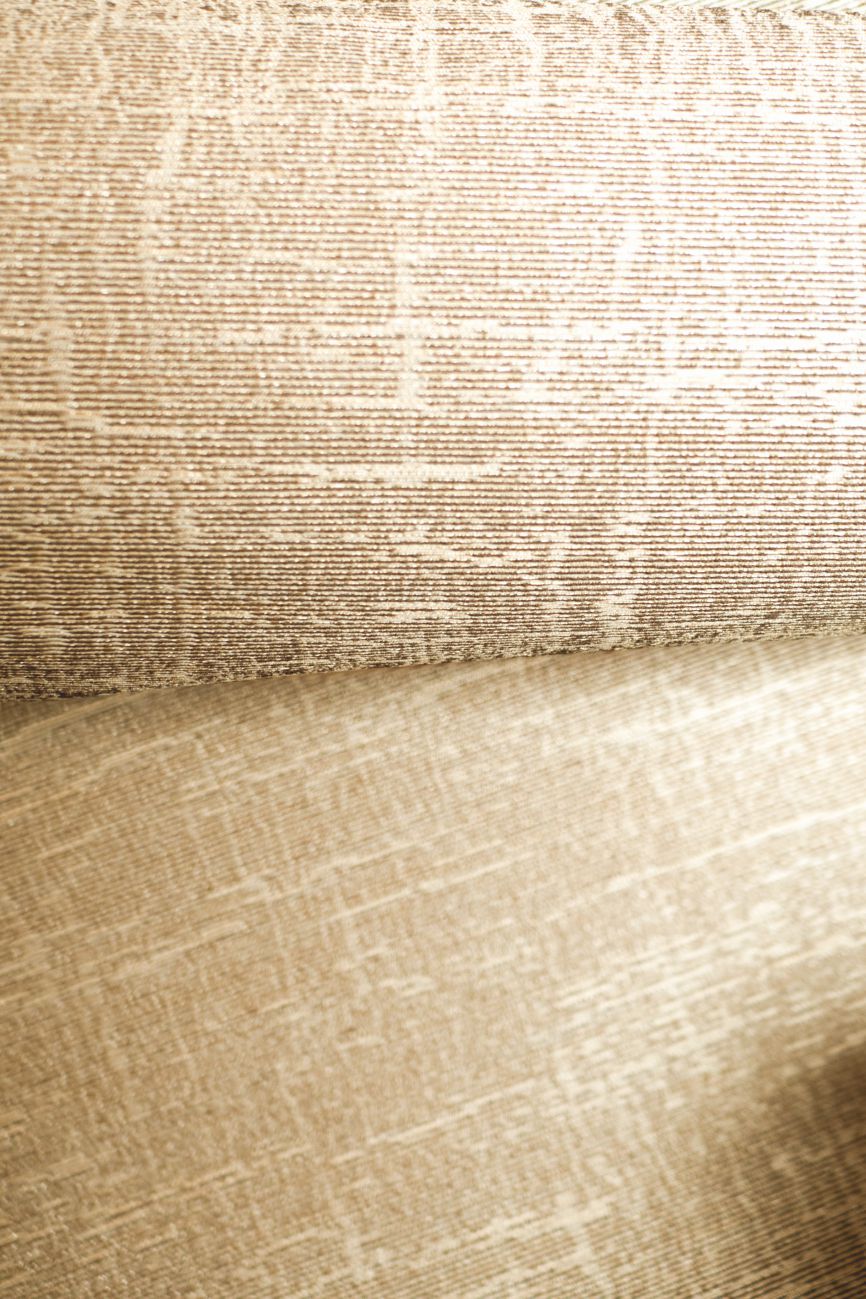 Willkommen bei einer phantastischen Expedition: Die Kollektion Écume erzählt von Tiefseegräben und ihren faszinierenden Geheimnissen. Während Lichtstrahlen bis auf den Meeresgrund reichen, schillern in der Tiefe verborgene Schätze. Eine üppige Komposition aus Gesso-Muscheln spielt mit funkelnden Lichtspiegelungen. Der verwitterte Rumpf eines U-Boots, verziert durch ein metallisches Patchwork aus Kupfer und Aluminium, berichtet von unglaublichen Fahrten durch die Weltmeere. In dieser stillen Unterwasserwelt ist sandiger Meeresgrund durch Strömungen geformt – so leuchtet ein Stoff im Perlmuttglanz, während ein Jacquard-Stoff die Wellenformen des Wassers einfängt. An der Oberfläche ragen riesige Palmen aus dem Meer und erweitern, ganz unmerklich, die träumerische Unterwasserwelt.