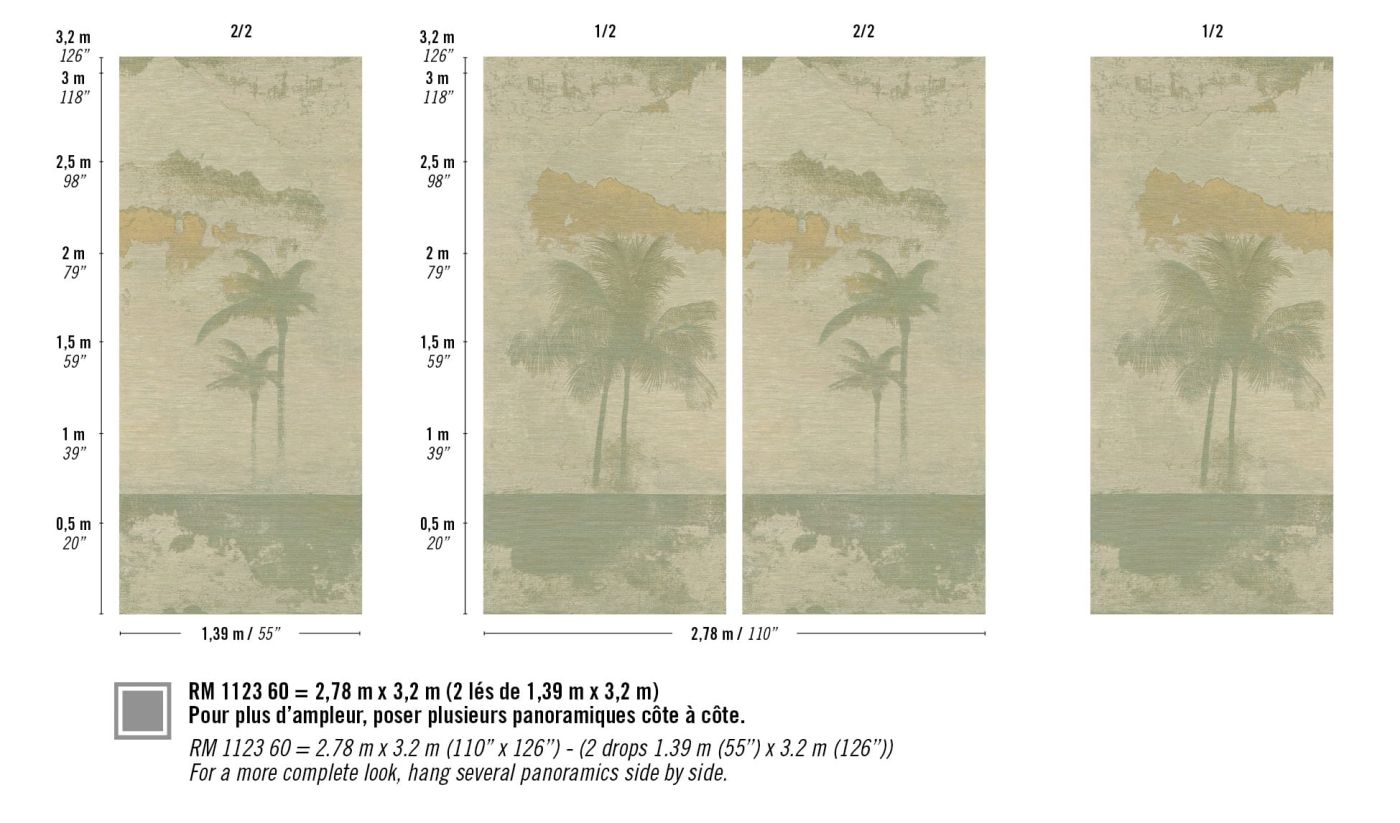 Abmessungen : Panoramaformat 2,78 m × 3,20 m, erhältlich in 2 Bahnen à 1,39 m