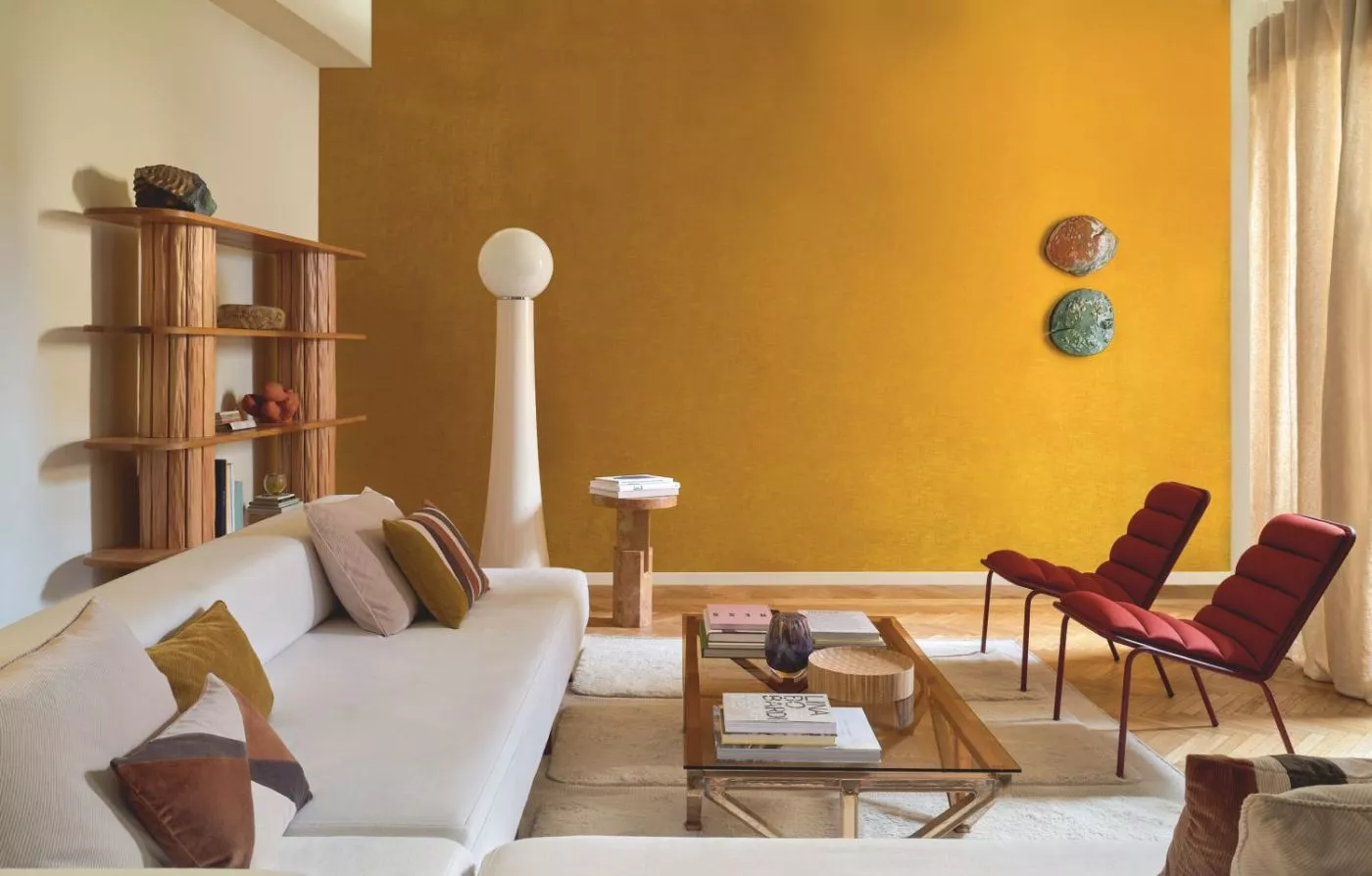 Mit der Alcôve-Kollektion gibt sich Wandvelours in gedämpften, raffinierten Farben hin, darunter Nuancen von Puderrosa, Paprika, Smaragdgrün, warmen Beigetönen und Weiß, Sonnengelb und mattem Türkisblau. Farben und Texturen, die kombiniert oder in sanften Farbblöcken verwendet werden können."