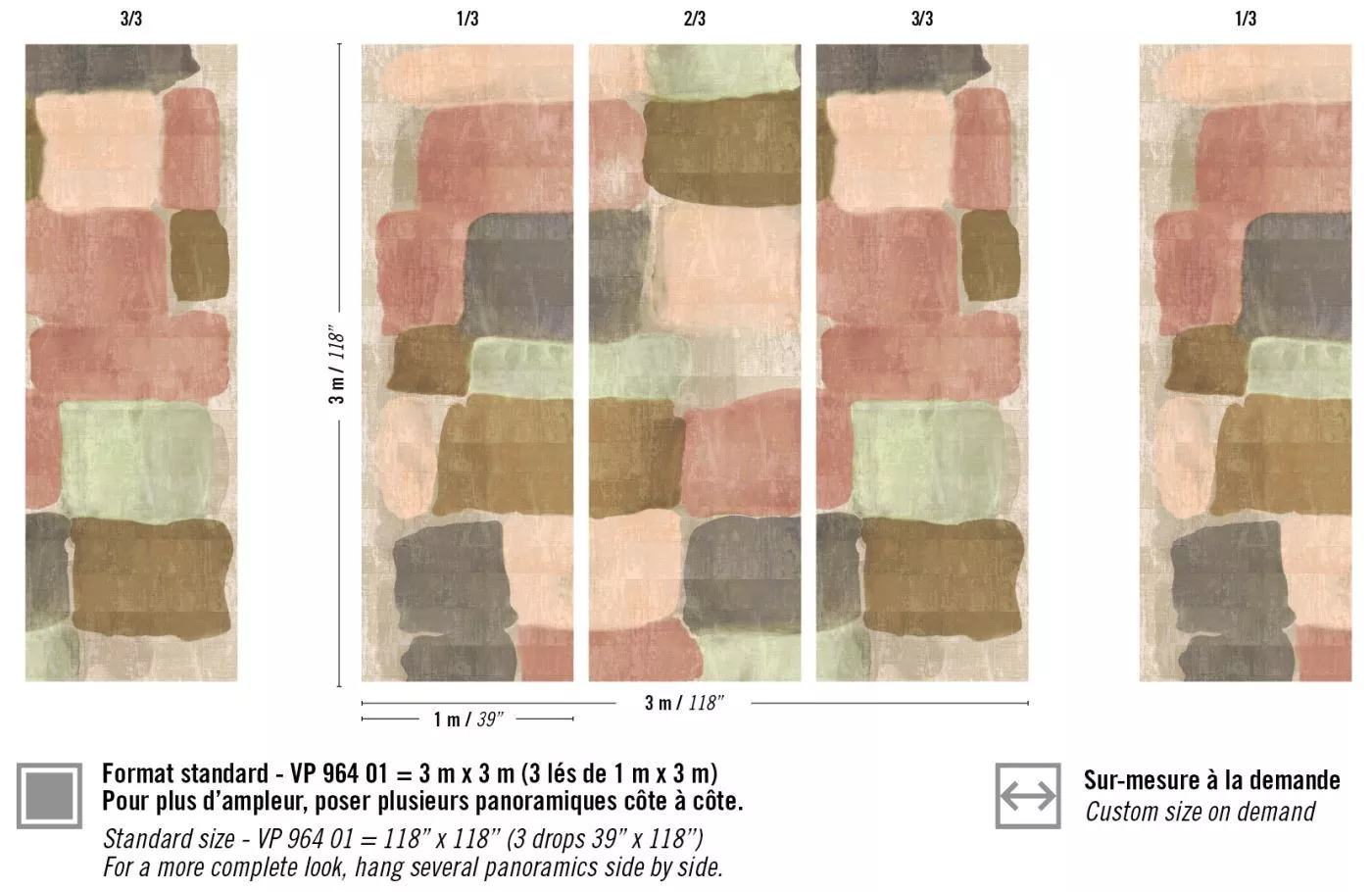Abmessungen +/- 3% : Standard von 3m x 3m, erhältlich in 3 Bahnen je 1m oder auf Kundenwunsch