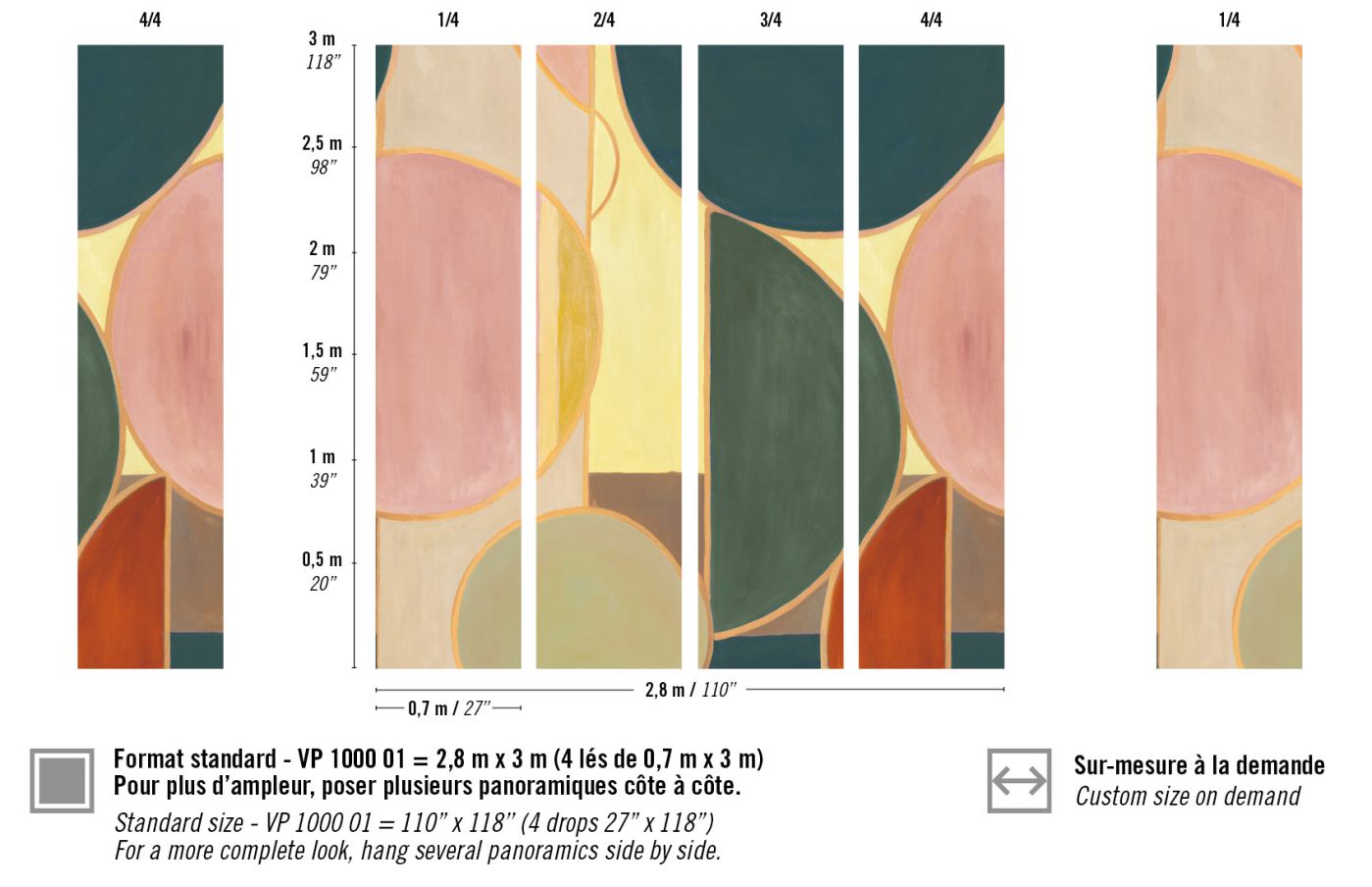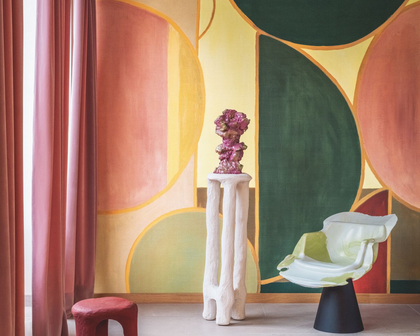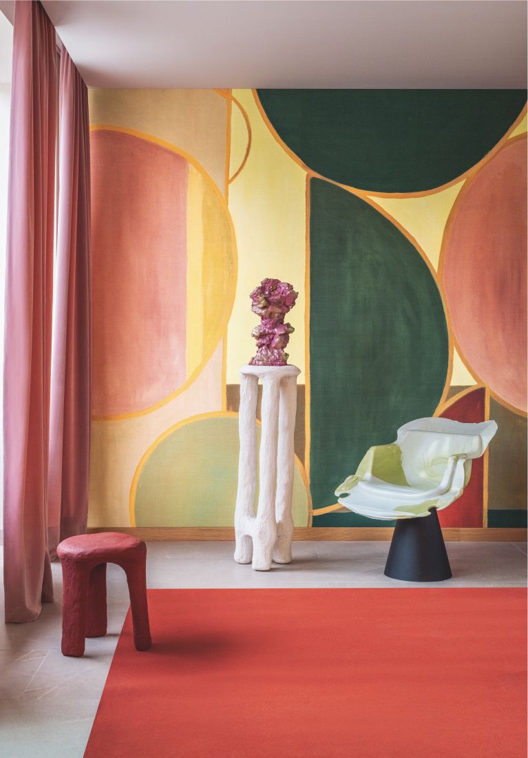 Bei den Wandpanoramen nimmt das malerische Werk der Künstlerin deutliche Formen an, als seien sie direkt durch ihre Werke beeinflusst: handgefertigte Malereien, die durch kräftige Farben zum Leben erweckt werden.