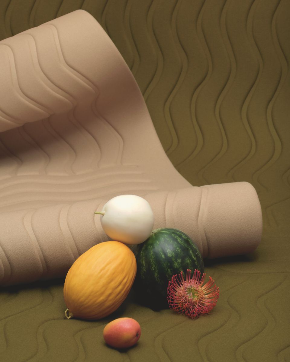 Die Wollpalette ist kühn und kräftig, während die anderen Materialien eine natürlichere, neutrale Haltung einnehmen, um den Stoff oder den Nubuk-Effekt zu präsentieren.