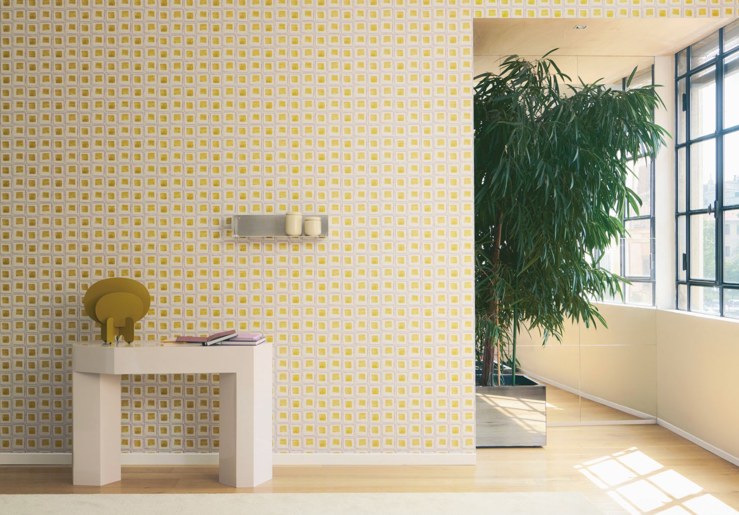 Ein Hauch von Unbekümmertheit belebt geometrische Kompositionen und abstrakte Motive; lebendige Farben springen ins Auge. Die Kreationen spielen mit euphorischer Energie und gewitzten Anspielungen auf Stoffe von Anni Albers, rhythmische Fassaden von Gio Ponti und graphische Drucke von Emilio Pucci.