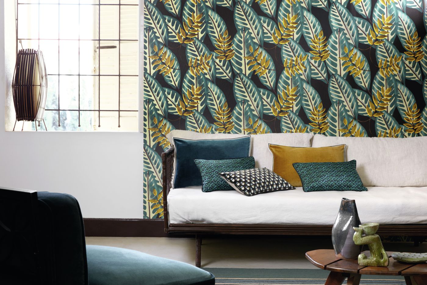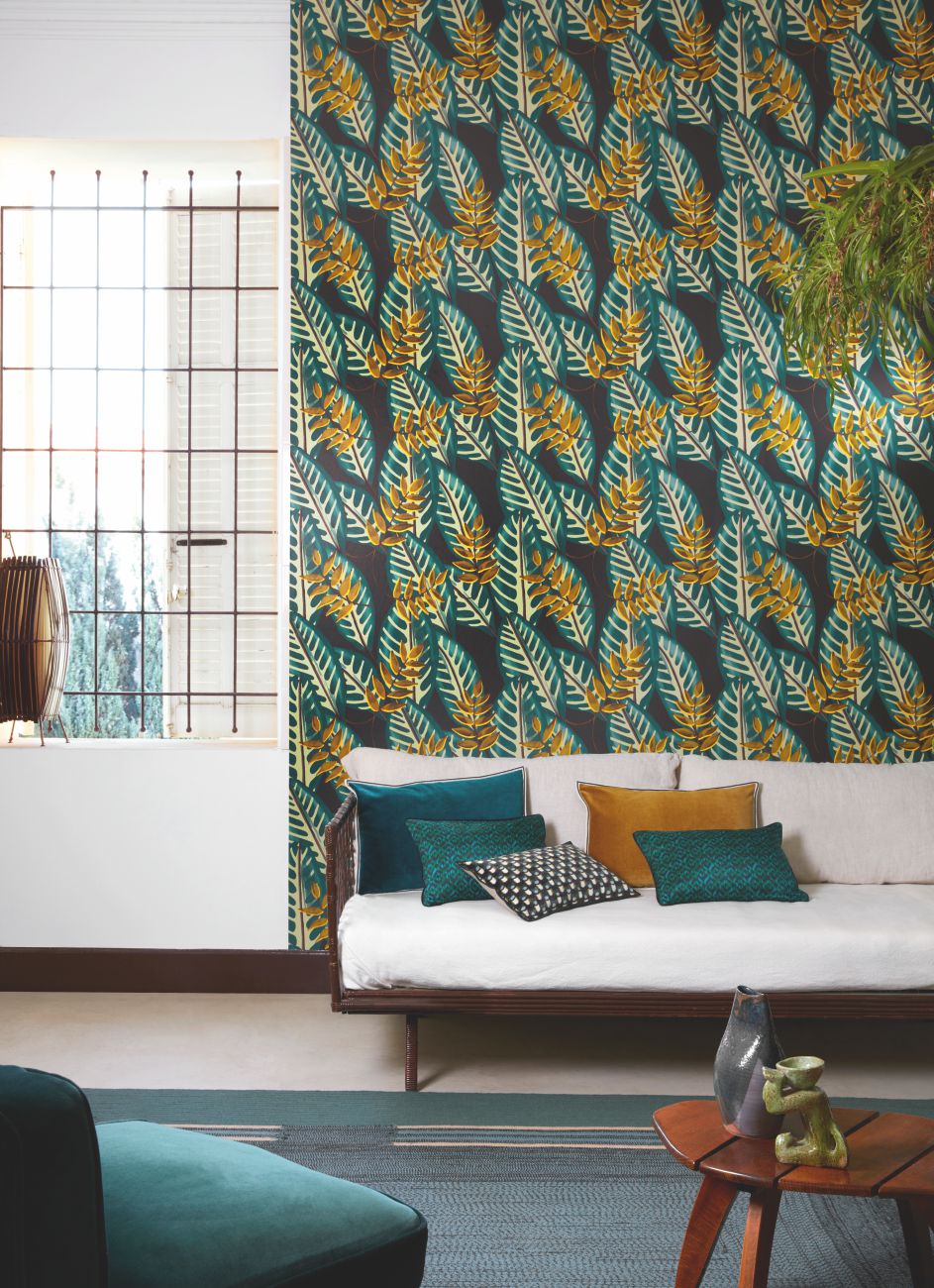 In dieser vielfarbigen Tapetenkollektion übertrumpfen sich fröhlich ausgeprägte Blumen- und Pflanzenmuster.