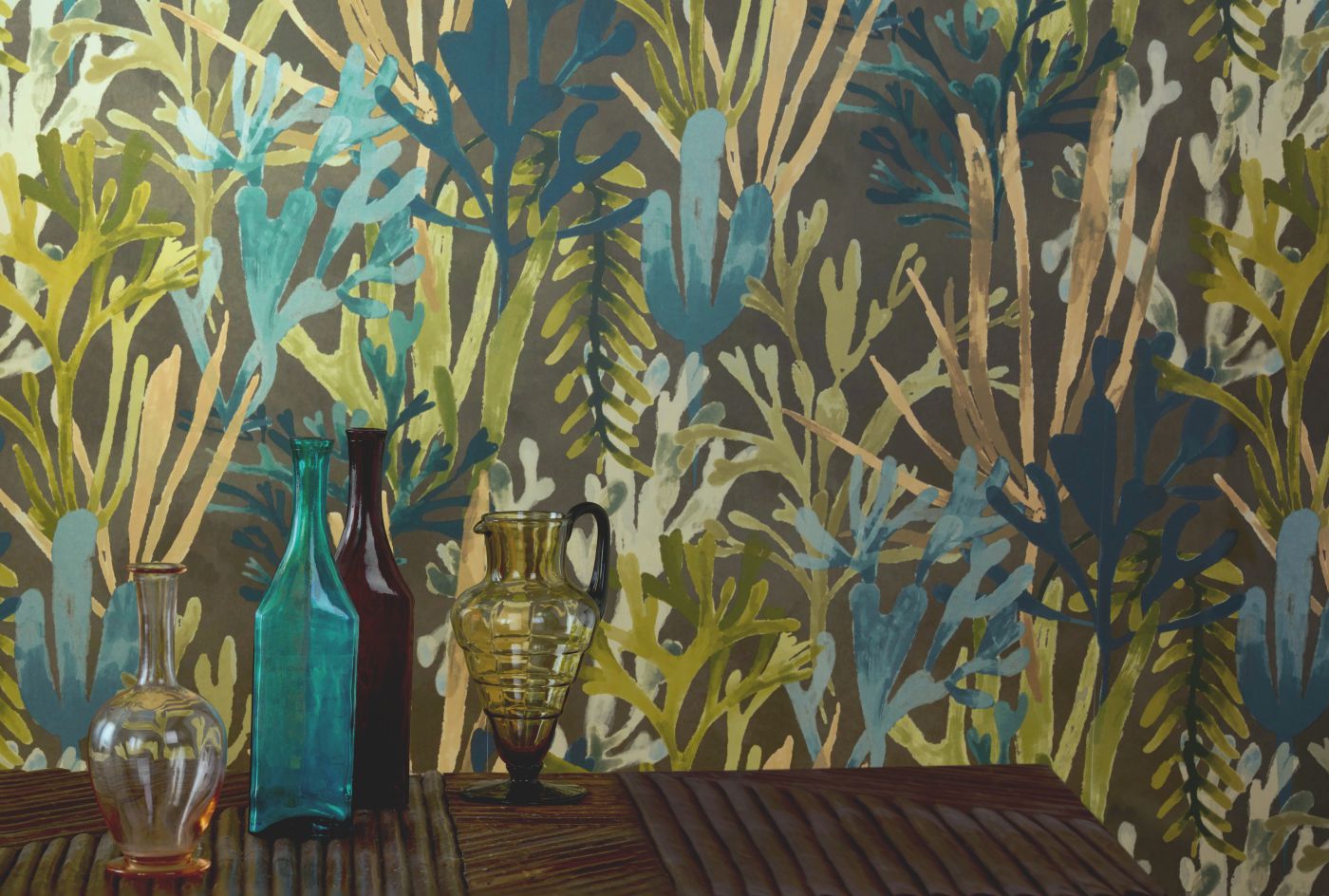 In dieser vielfarbigen Tapetenkollektion übertrumpfen sich fröhlich ausgeprägte Blumen- und Pflanzenmuster.