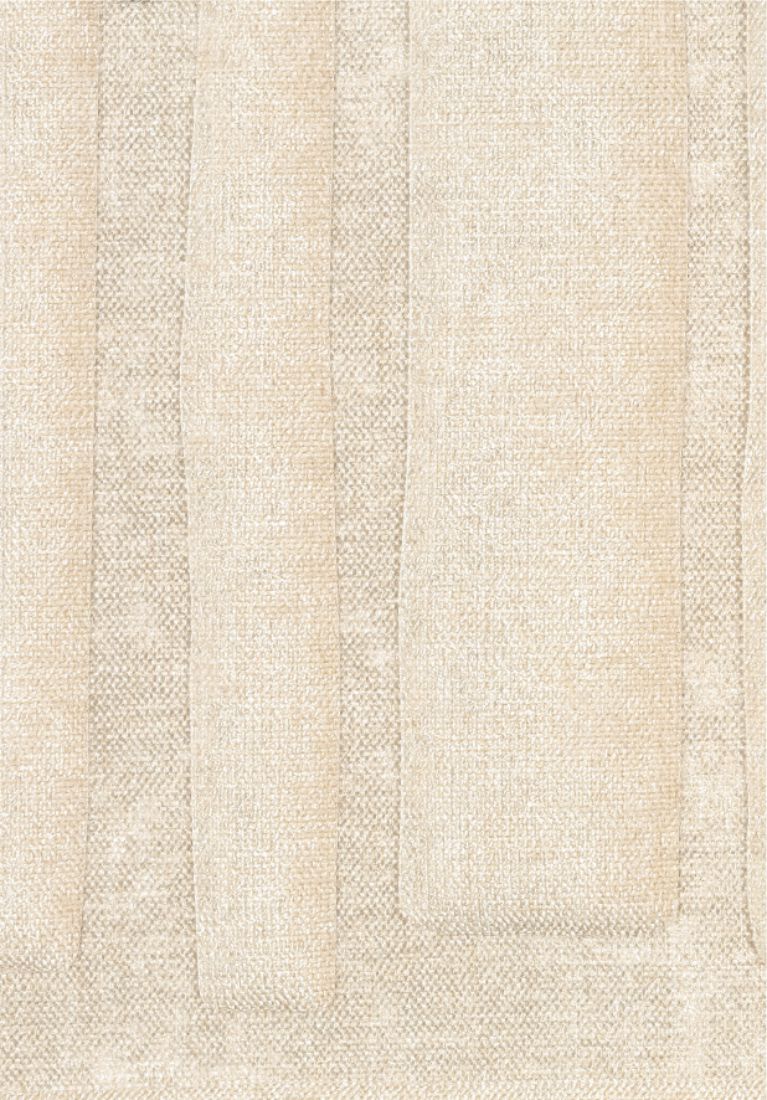 Die Dreidimensionalität hat zwei neue Gefährten bekommen: Leinen und Chenille. Der eine ist sehr matt, der andere warm. Bei diesem feinen Gespann wölben sich die Linien, erobern voluminöse Welten. Architektonische Bögen, geschwungene Zierleisten, pralle Gestirne ...
