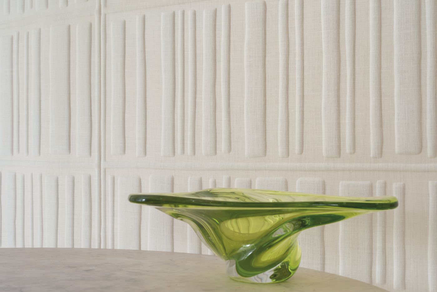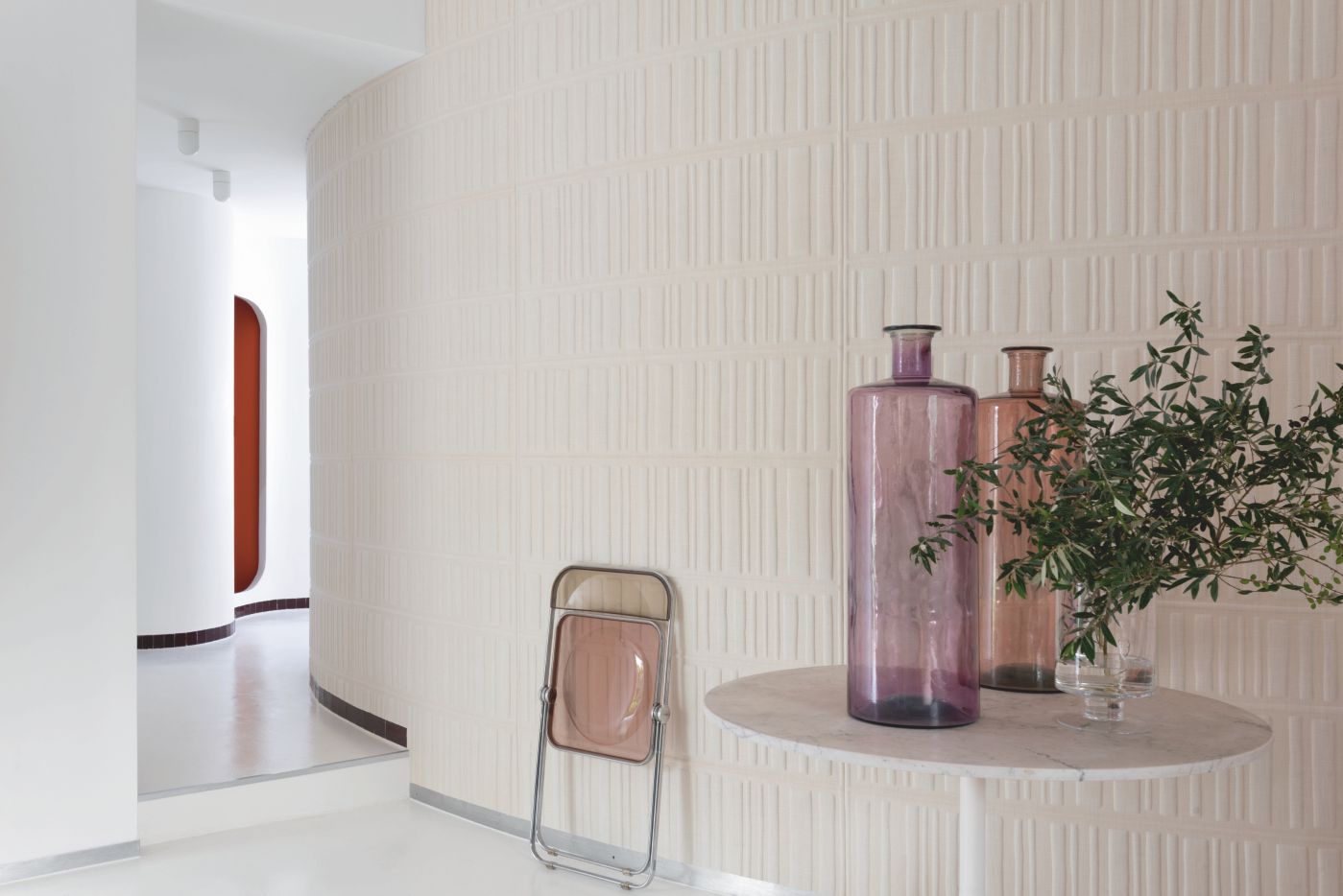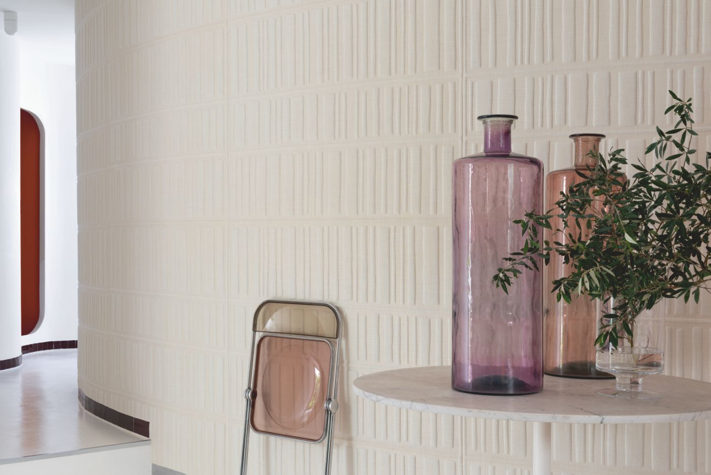 Wandverkleidungen mit neuen Texturen im 3-D-Effekt: Leinen und Chenille. Produkte für das Objektgeschäft, Made in France, Leinen mit Zertifikat «Masters of linen», die Wandverkleidungen tragen zudem zu einer behaglichen Raumakustik bei.