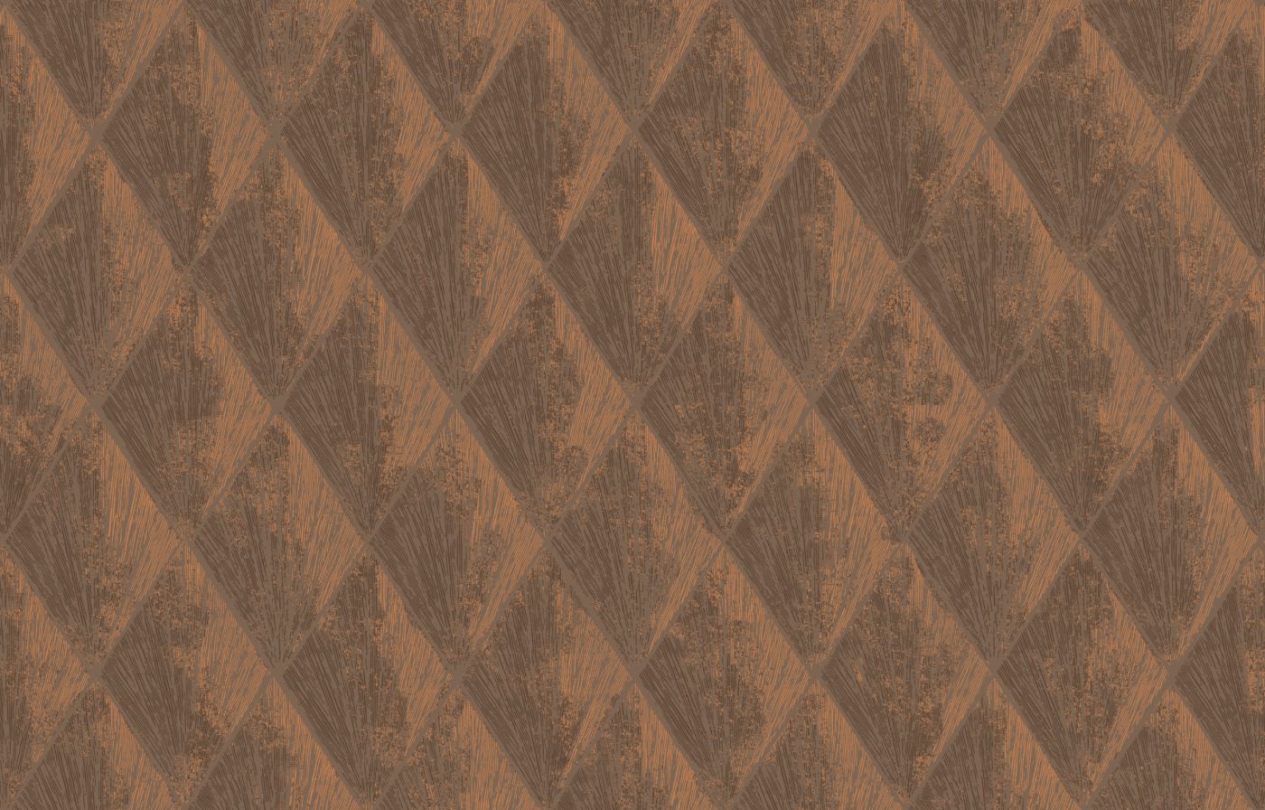 In einer Art-Deco-Bewegung leiht sich diese Kollektion die Codes der Intarsien und die geometrischen Balken der 1930er Jahre, um sie auf Tapeten zu interpretieren. Durch den Siebdruck zeigt es seine Relieffarben, als ob jede Linie der Dekoration von Hand gemalt wäre. Seine Farben kombinieren Matt mit Metallic: Kupfer, Silber und farbiges Gold sowie Koralle, Weiß oder Cyanblau.
