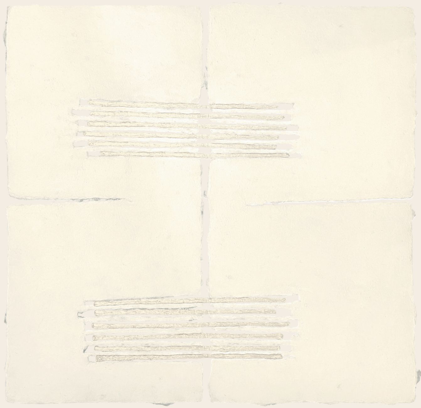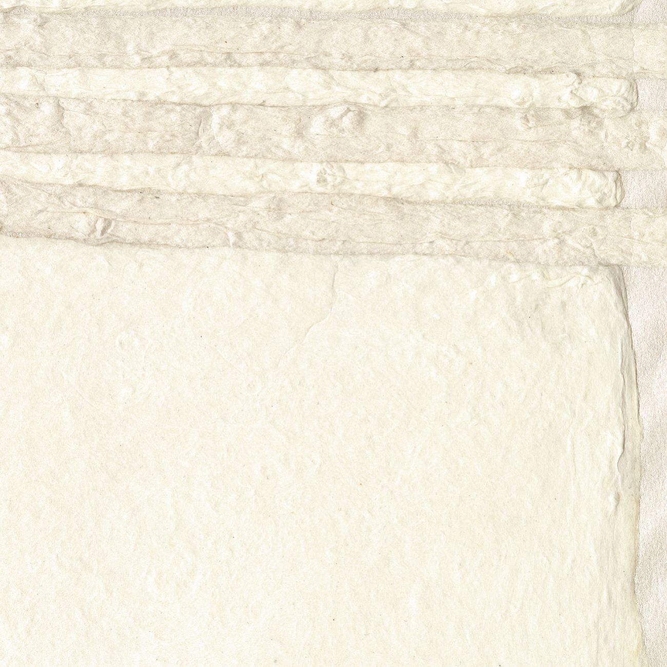 Entziehend jeder Klassifikation nimmt Papier Volumen an, um eine Welt der Reliefgestaltung im Geiste handwerklicher Kunst zu erfinden. Durch kühne Muster und Texturen wird die rohe und beruhigende Einfachheit des Materials enthüllt. Beides ist fassbar und natürlich. Von den samtigen Tönen des Ton-in-Ton bis zu den Kontrasten von Gold oder schimmernden Farbtönen gegen matte Papiere ist alles ein Spiel von Licht.