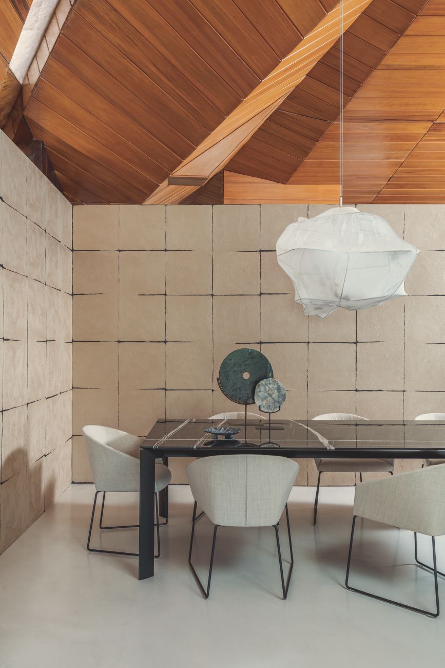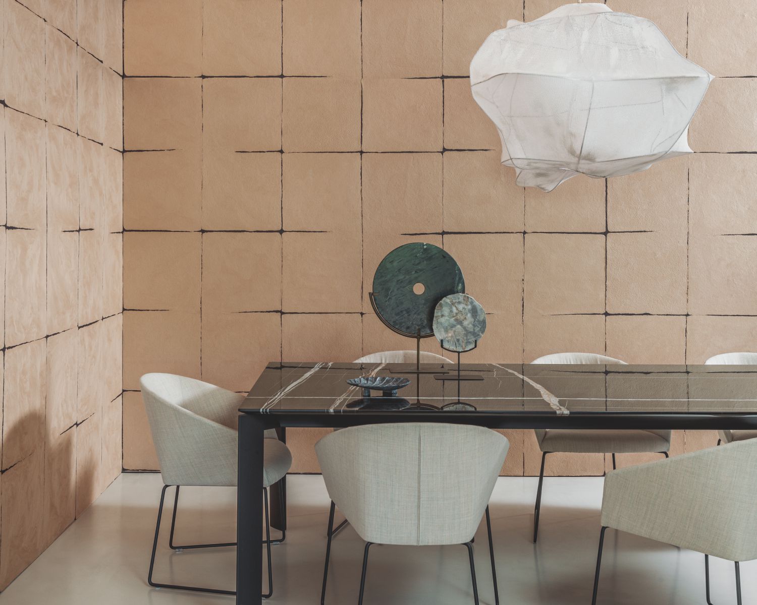 Entziehend jeder Klassifikation nimmt Papier Volumen an, um eine Welt der Reliefgestaltung im Geiste handwerklicher Kunst zu erfinden. Durch kühne Muster und Texturen wird die rohe und beruhigende Einfachheit des Materials enthüllt. Beides ist fassbar und natürlich. Von den samtigen Tönen des Ton-in-Ton bis zu den Kontrasten von Gold oder schimmernden Farbtönen gegen matte Papiere ist alles ein Spiel von Licht.