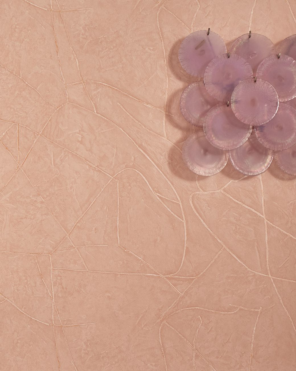 Diese Kollektion bietet eine Re-Interpretation von Kintsugi, der Kunst, zerbrochene Keramik mithilfe von Gold zusammenzufügen und sie somit zu veredeln. Bei dieser Wiederherstellungstechnik spielt das Material Gips eine wichtige Rolle, das eine natürliche Patina erzeugt und dabei den Wert der Arbeiten hervorhebt. Unvorhergesehen und zufällig kreieren metallene Fäden ein Streifenmuster auf mattem Untergrund. Ein Chaos wird so zum Juwel und vermittelt zen-artige Ruhe.
