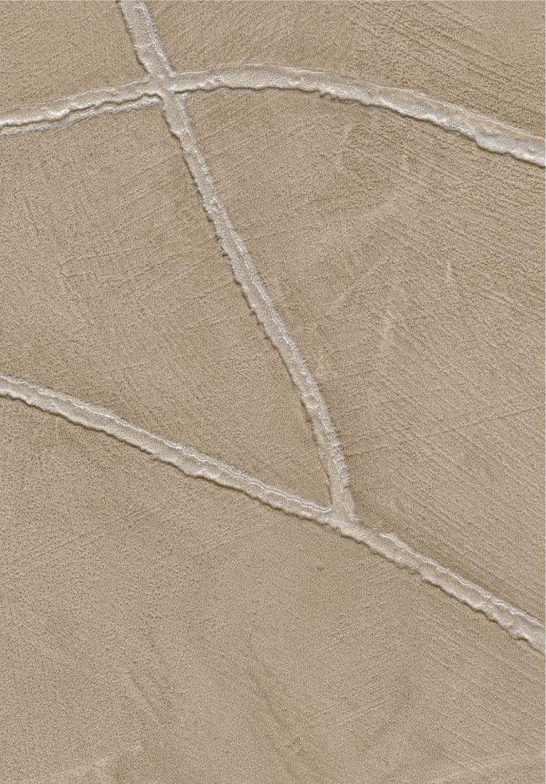 Diese Kollektion bietet eine Re-Interpretation von Kintsugi, der Kunst, zerbrochene Keramik mithilfe von Gold zusammenzufügen und sie somit zu veredeln. Bei dieser Wiederherstellungstechnik spielt das Material Gips eine wichtige Rolle, das eine natürliche Patina erzeugt und dabei den Wert der Arbeiten hervorhebt. Unvorhergesehen und zufällig kreieren metallene Fäden ein Streifenmuster auf mattem Untergrund. Ein Chaos wird so zum Juwel und vermittelt zen-artige Ruhe.
